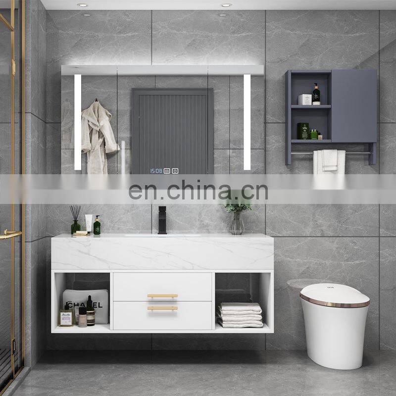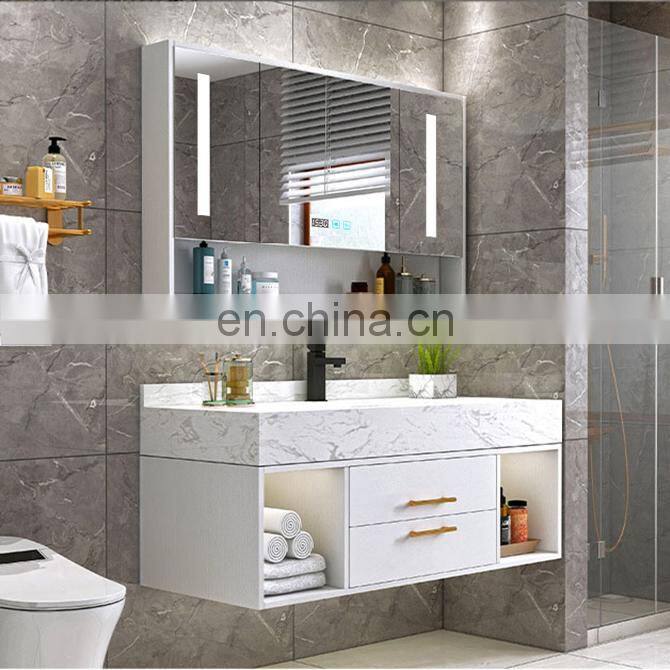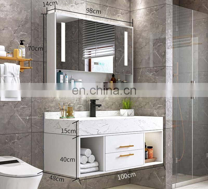 100cm Modern Luxury Stone Bathroom Vanity Set Bathroom Vanities Combo Cabinet Unit LED Smart Mirror Cabinet