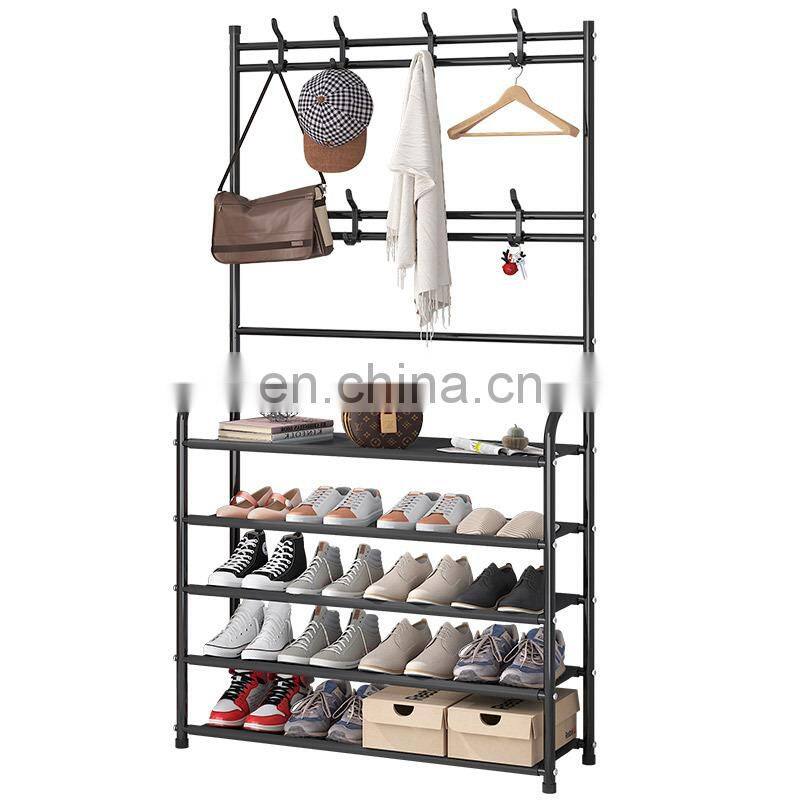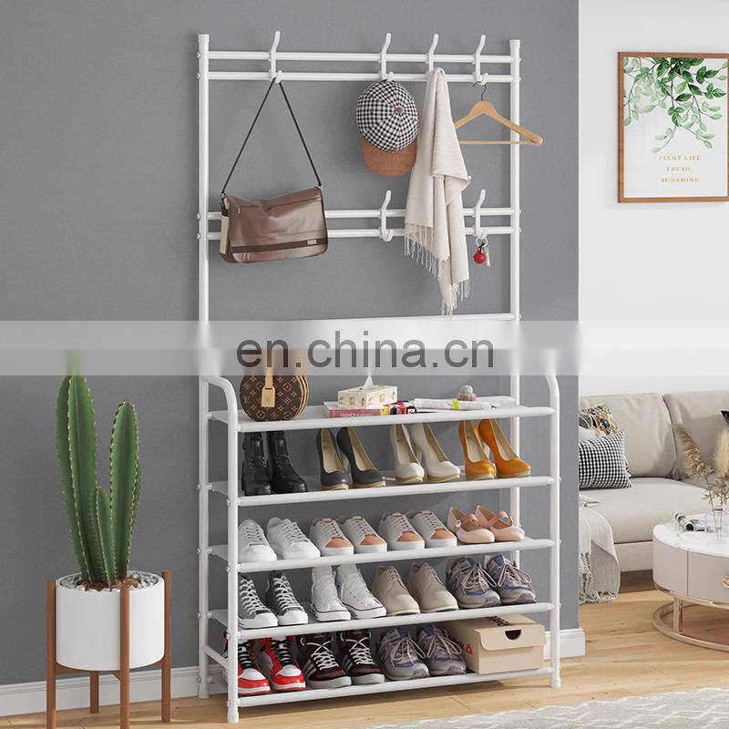 Door Side Standing Metal Entrance Hall Coat Shoe Clothes And Bag Hanger Rack Storage Stand Organiser Iron Shelf Shelves
