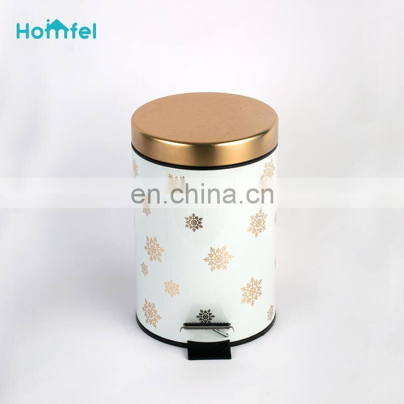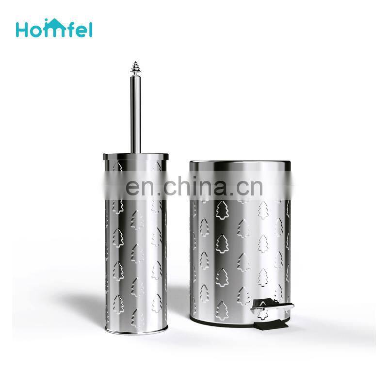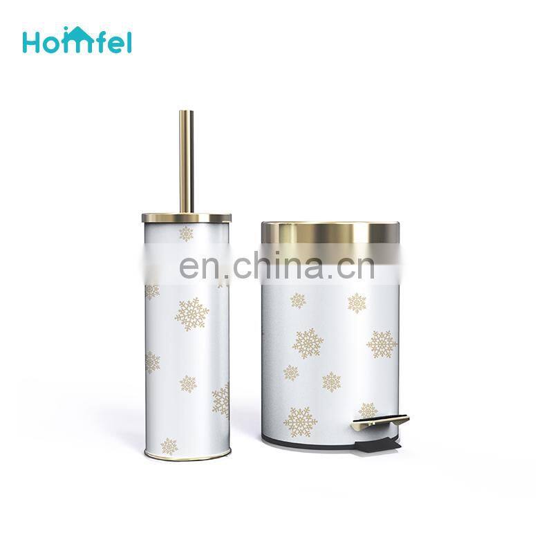 Home > Products > Trash Can > Christmas Series Bathroom Accessories 5 Pieces Pedal Bin Toilet Brush Holder Toilet Roller Xmas Tree Snowflake Printing