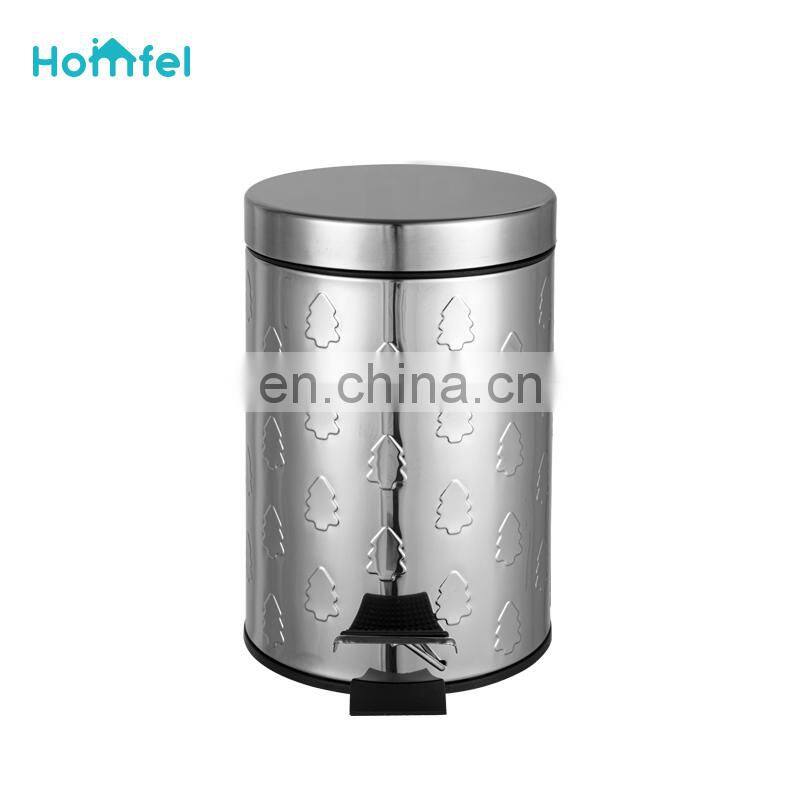 Spiral Pattern Vintage Foot Pedal Trash Can Metal Waste Bin With Inner Bucket Mirror Powder Coating