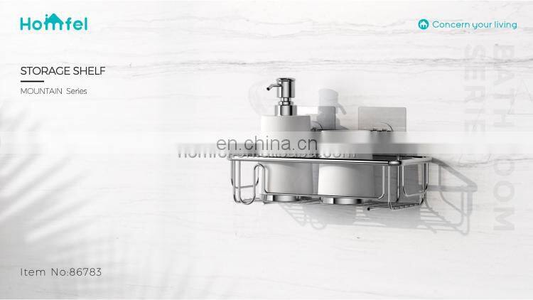 PS Corner Shower Caddy Wall Mounted Bathroom Basket Shelf Adhesive No Drilling Corner Shelf Rack