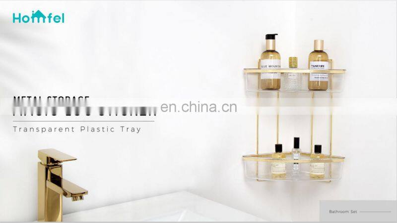 - Hot Sales Adhesive Corner Shower Caddy Two Tier Iron Wire Rack Bathroom Corner Shelf
