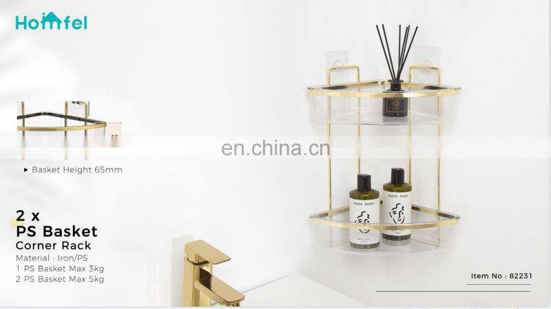 Home > Products > Shower Caddy > PS Corner Shower Caddy Wall Mounted Bathroom Basket Shelf Adhesive No Drilling Corner Shelf Rack