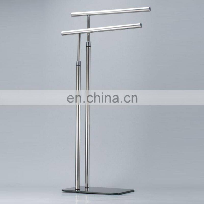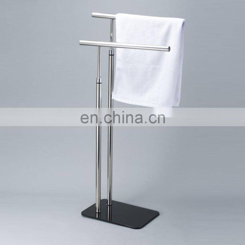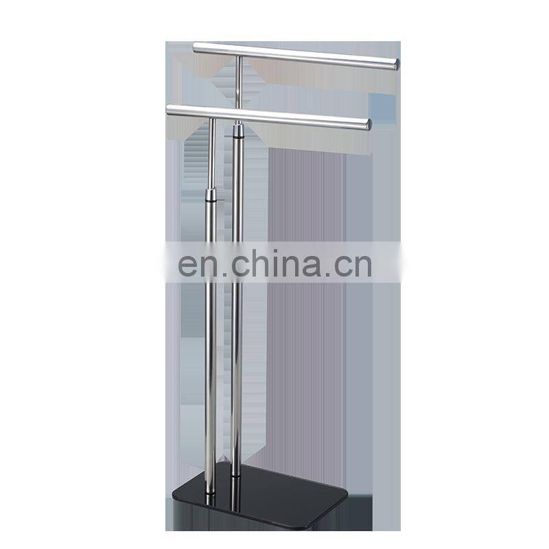 Factory Simple Modern Style Floor Standing Double Handle Easy Dry Bathroom Hotel Stainless Steel Stand Towel Rack