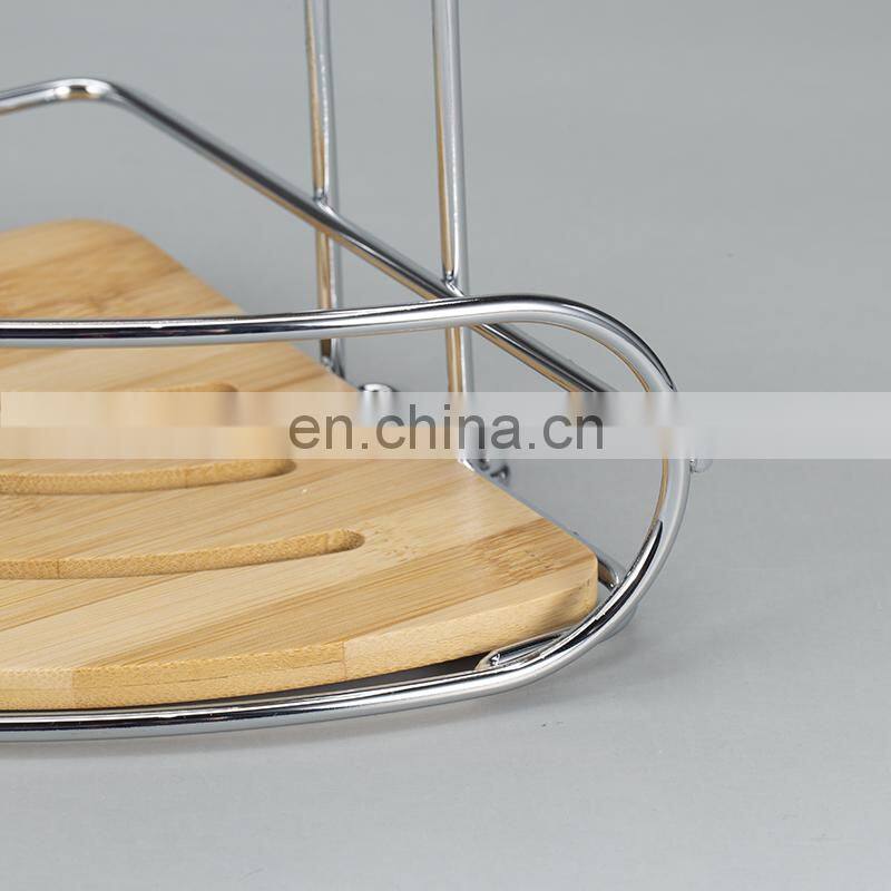 2 Layer Wall Mounted No Drilling Corner Shelf Decoration Bamboo Iron Bathroom Storage Rack