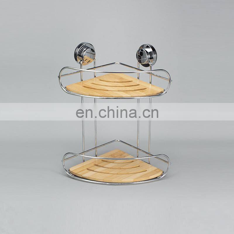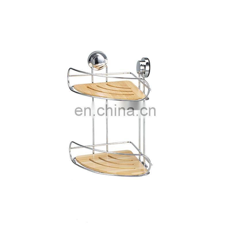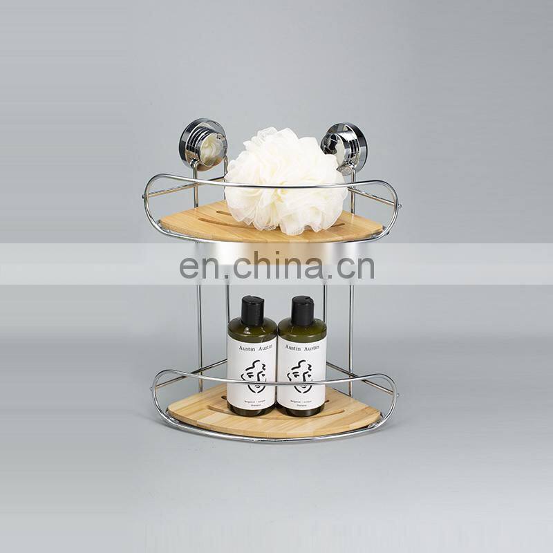 Home > Products > Shower Caddy > 2 Layer Wall Mounted No Drilling Corner Shelf Decoration Bamboo Iron Bathroom Storage Rack