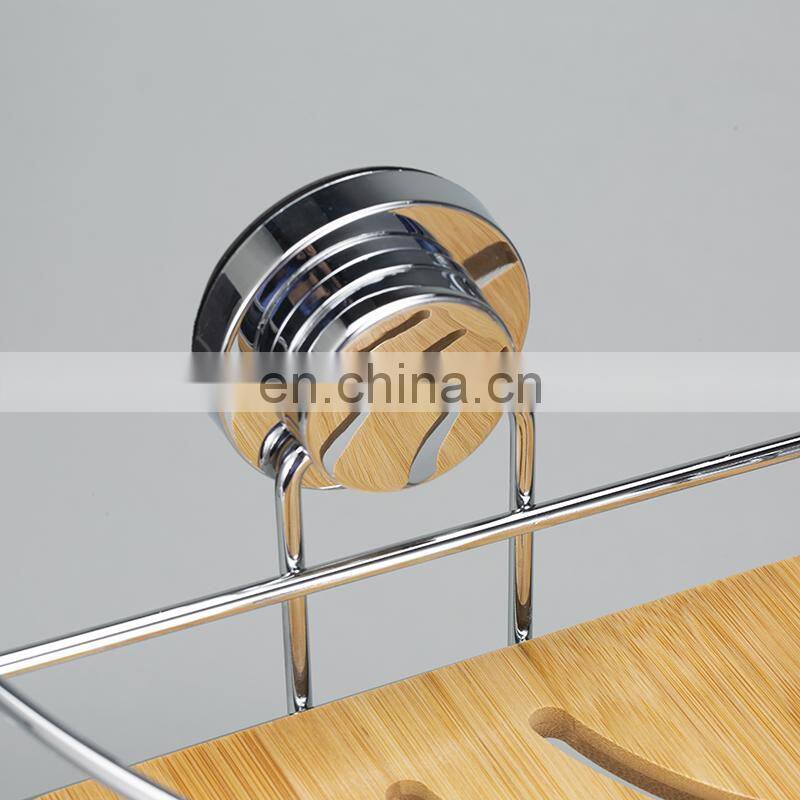 Bathroom Storage Shelf Shower Caddy With Suction Cup Steel Wooden Shelves Corner Wall Mounted Rack
