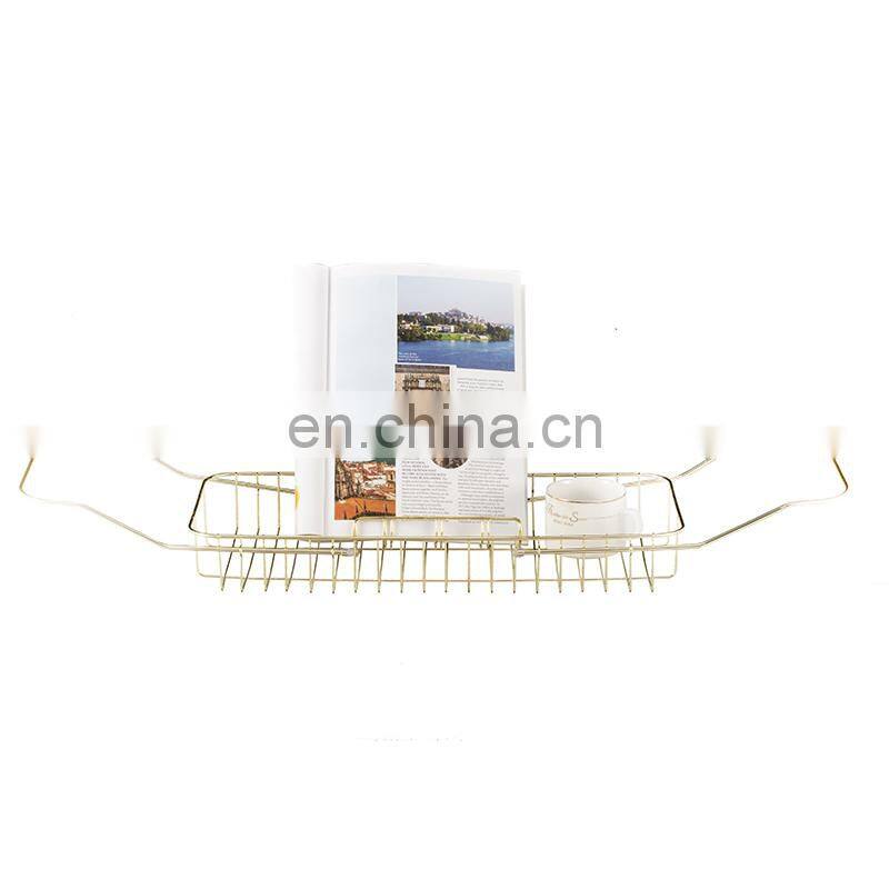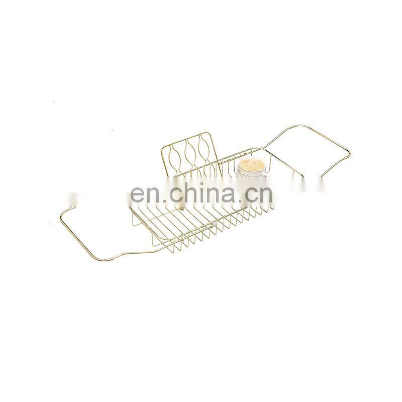 Luxury Golden Iron Wire Folding Bathroom Shelf Bathtub Tray Shower Expandable Bathtub Caddy Towel Wine Book Holder Bathtub Rack