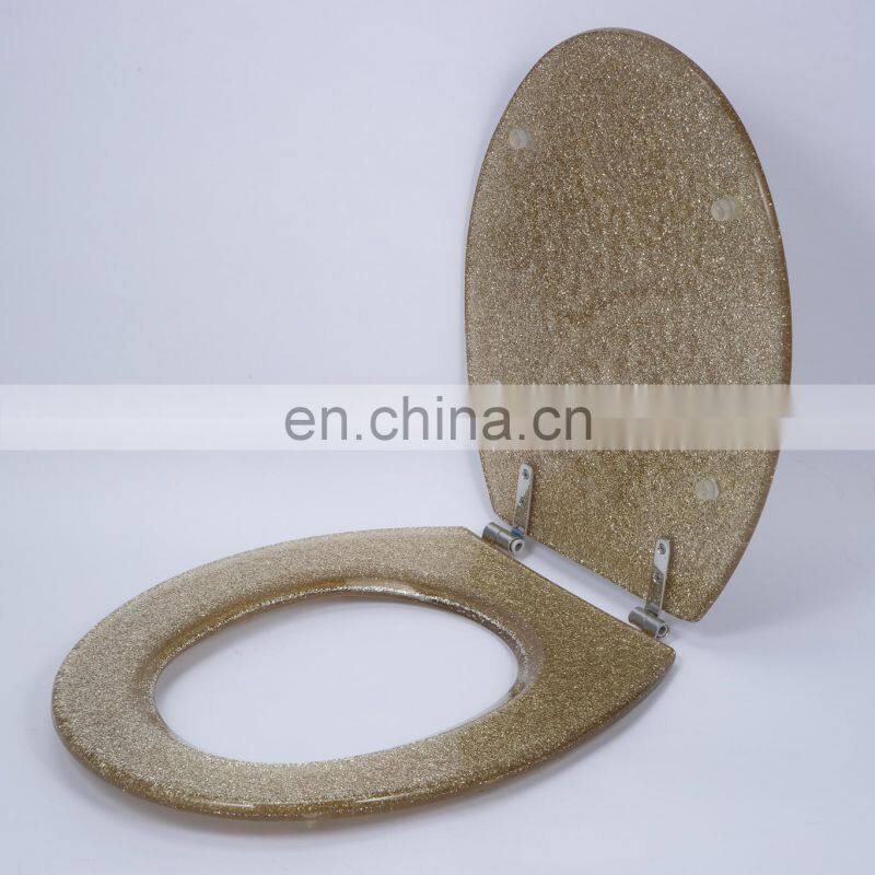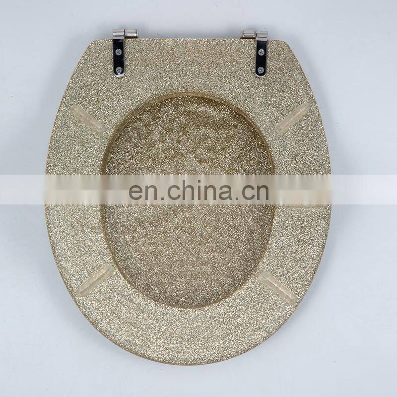 Polyresin Glitter Zinc Alloy Hinge Round Toilet Seat Polyresin Toilet Seat Toilet Glittery