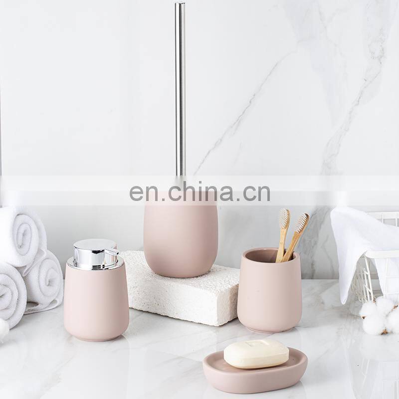 Bathroom Accessories Products Sets Toilet Brush Holder Soap Dispenser Tooth Brush Holder Soap Dish Poly-resin With Painting
