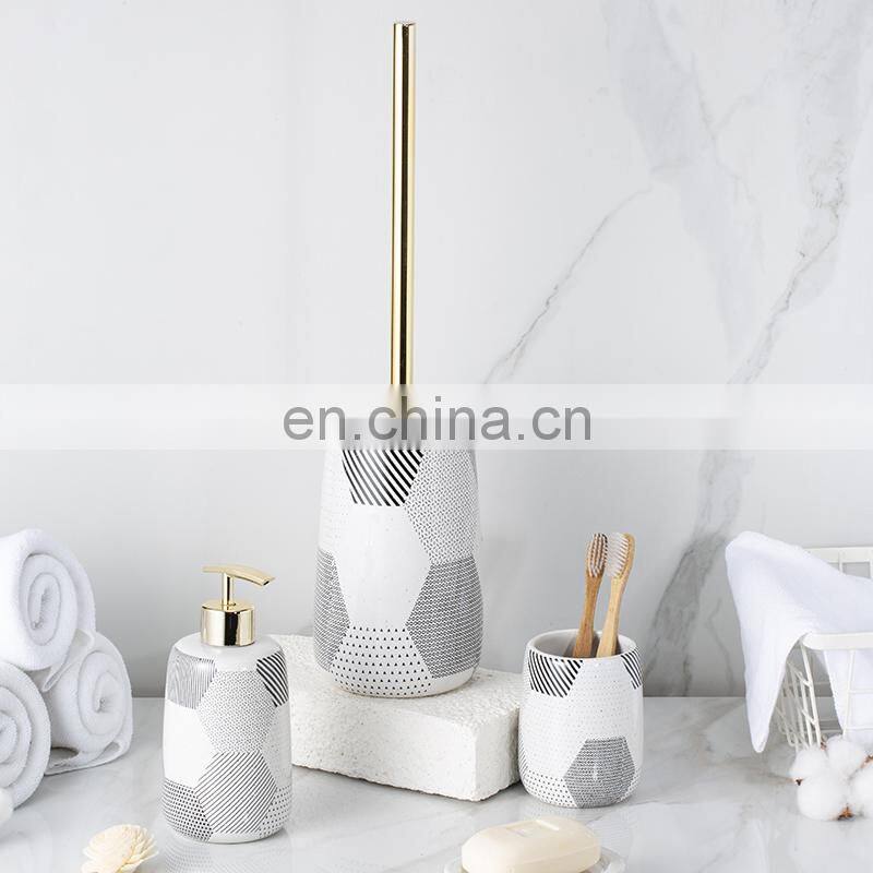 Bathroom Accessories Products Sets Toilet Brush Holder Soap Dispenser Tooth Brush Holder Soap Dish Poly-resin With Painting