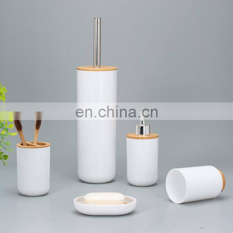 6 Bathroom Set Soap Dispenser Tumbler Toothbrush Holder Soap Dish Toilet Brush Plastic Bamboo Bathroom Accessories