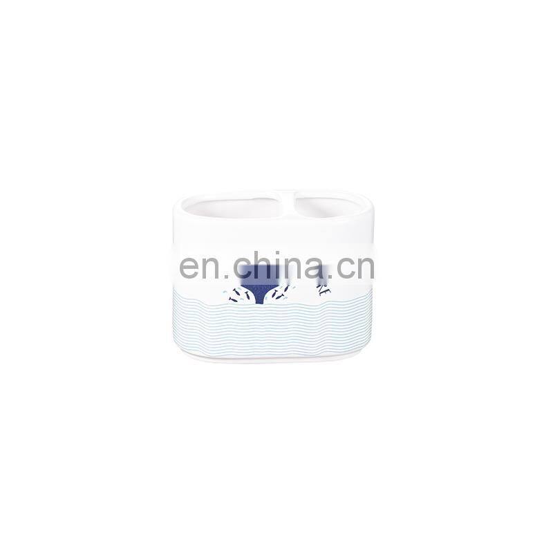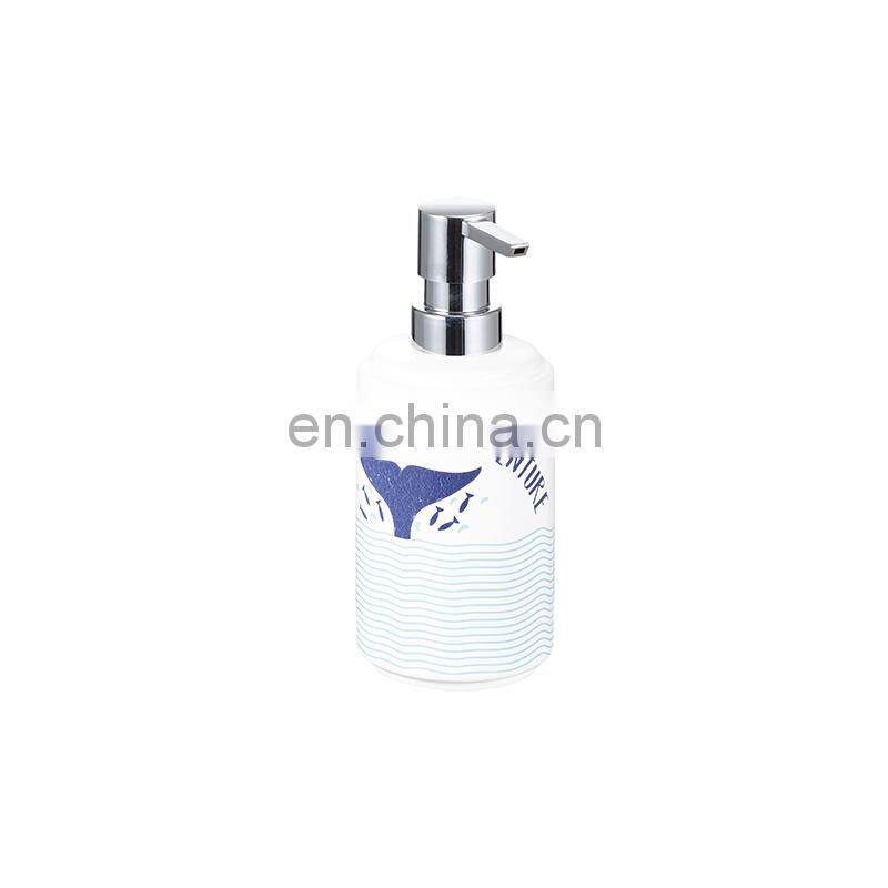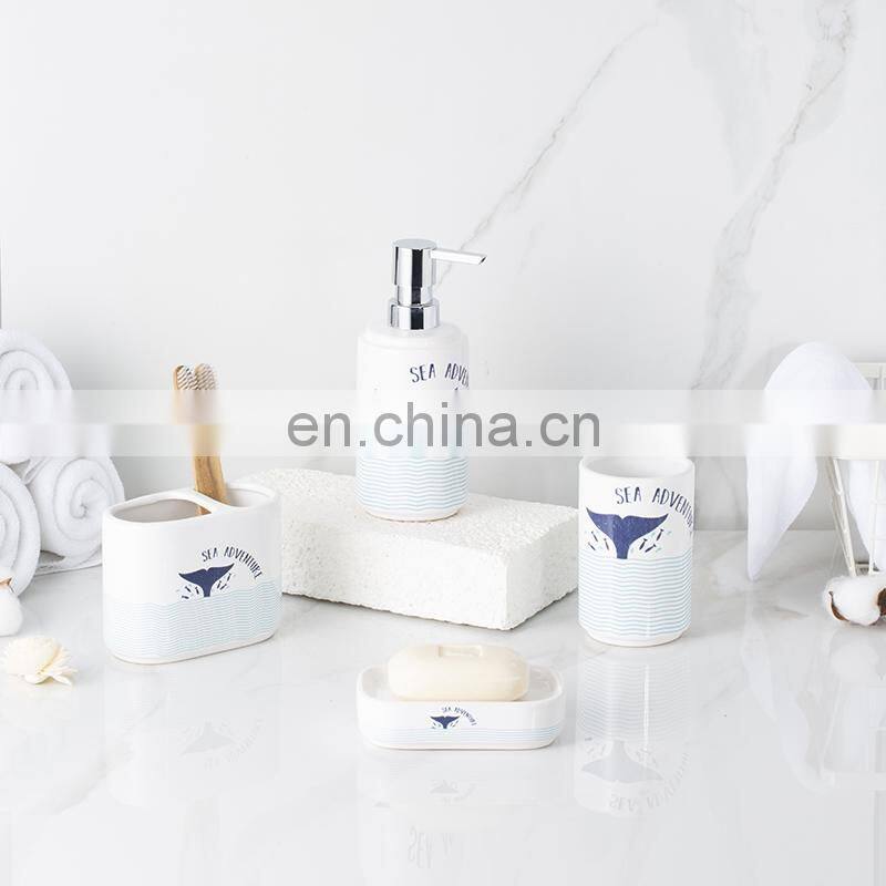 Family White Ceramic Including 4 Piece Soap Dispenser Toothbrush Holder Tumbler Soap Dish With Ocean Pattern Bathroom Accessory