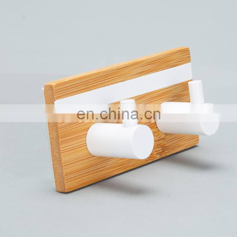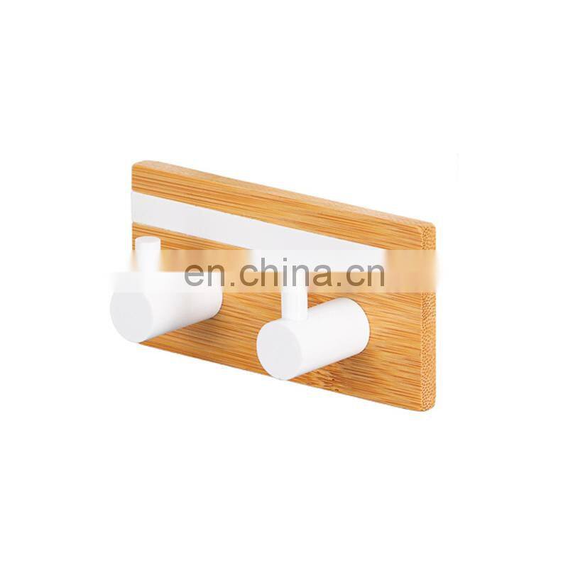 Direct Factory Supply Customized Logo Bamboo Strong Bathroom Adhesive Hook Wood Wall Hanger
