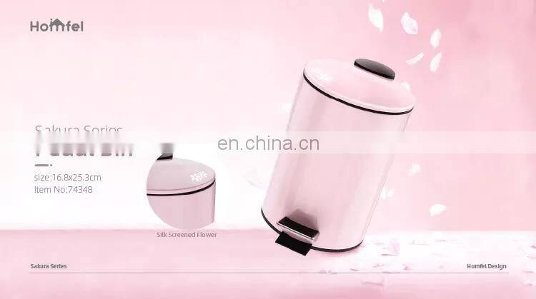 Sakura Blossoms Series White Pink Powder Coating Bathroom 6 Pieces Set Toilet Brush Holder Metal Trash Can Corner Storage Racks