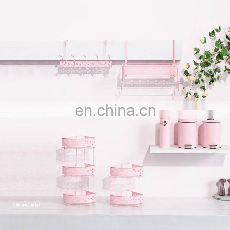 Home > Products > RECOMMEND SERIES > Pink Sakura Punching Style Bathroom Accessories 6 Pieces Toilet Brush Holder Trash Can Hanging Basket Hooks Corner Racks