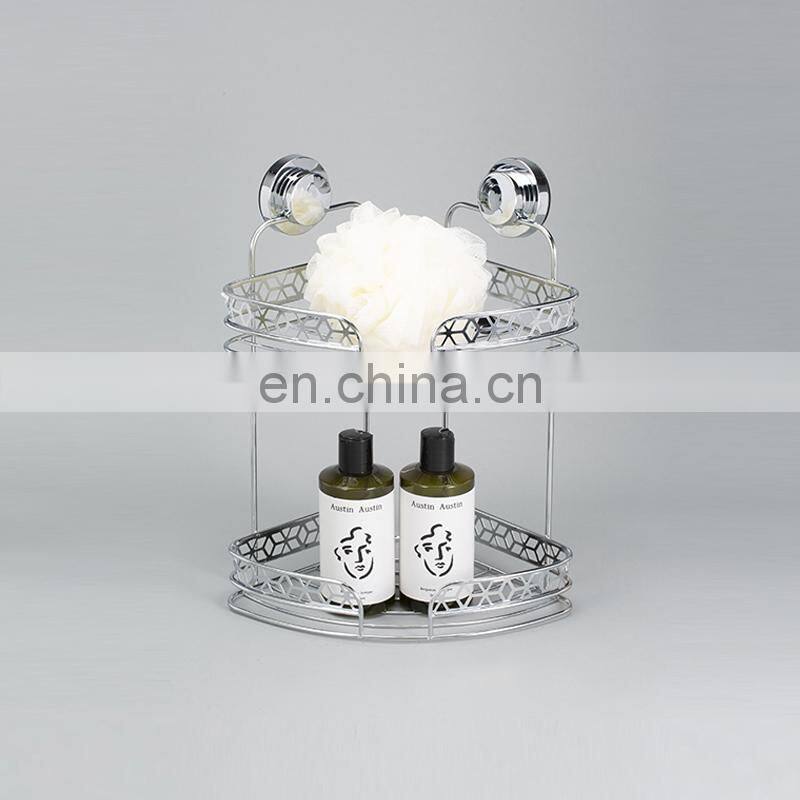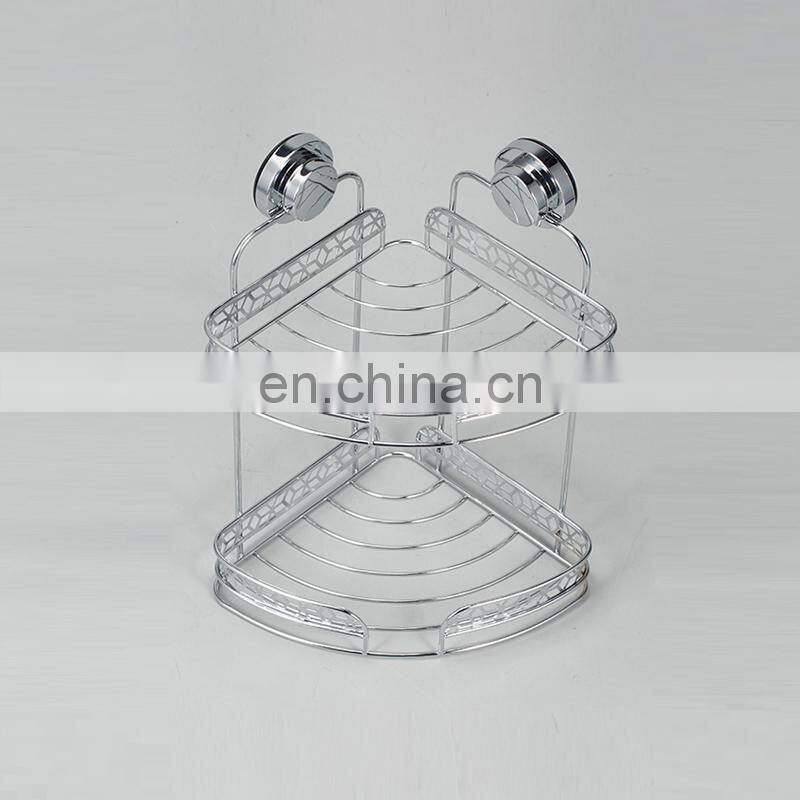 Hot Sales Suction Cup Corner Shower Caddy Two Tier Iron Wire Rack Bathroom Corner Shelf