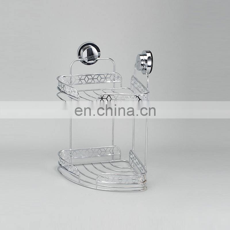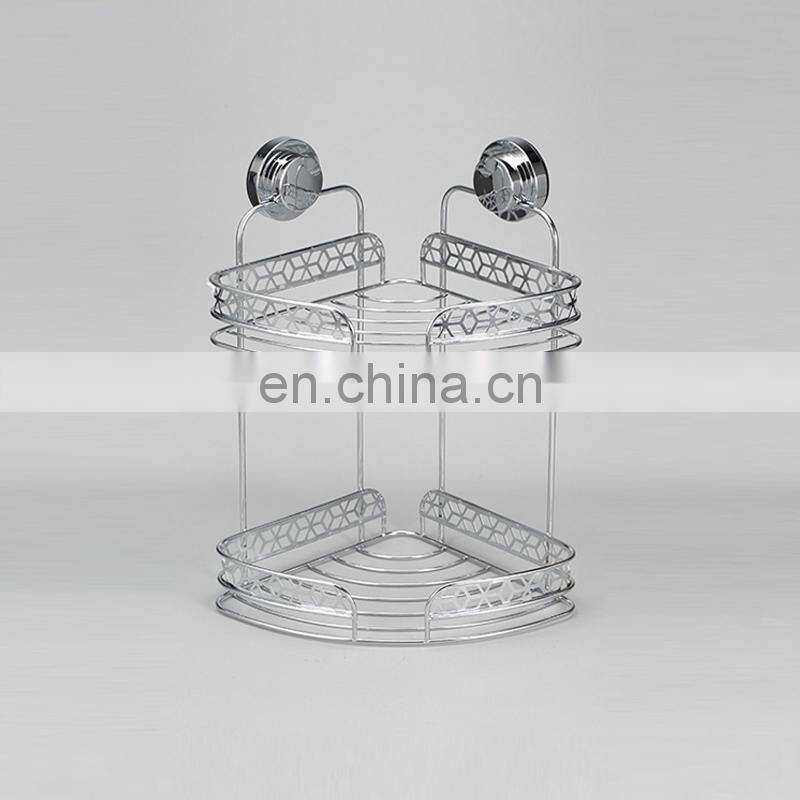 Hot Sales Diamond Series Suction Cup Corner Shower Caddy Iron Wire Rack Bathroom Corner Shelf
