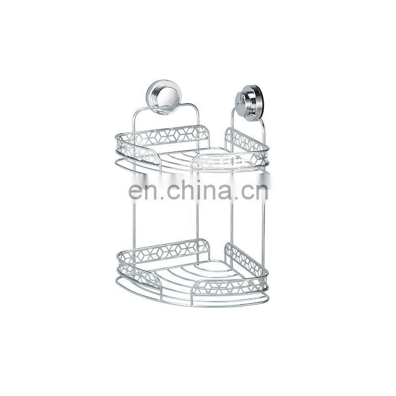 Home > Products > RECOMMEND SERIES > Hot Sales Suction Cup Corner Shower Caddy Two Tier Iron Wire Rack Bathroom Corner Shelf