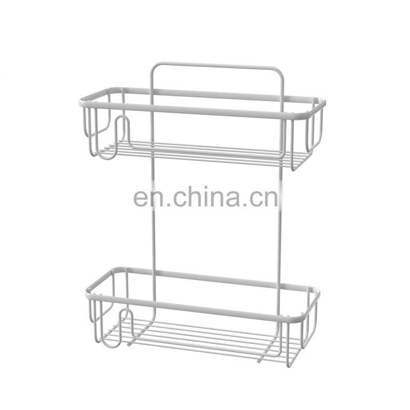 - Hot Sales Adhesive Corner Shower Caddy Two Tier Iron Wire Rack in Bathroom
