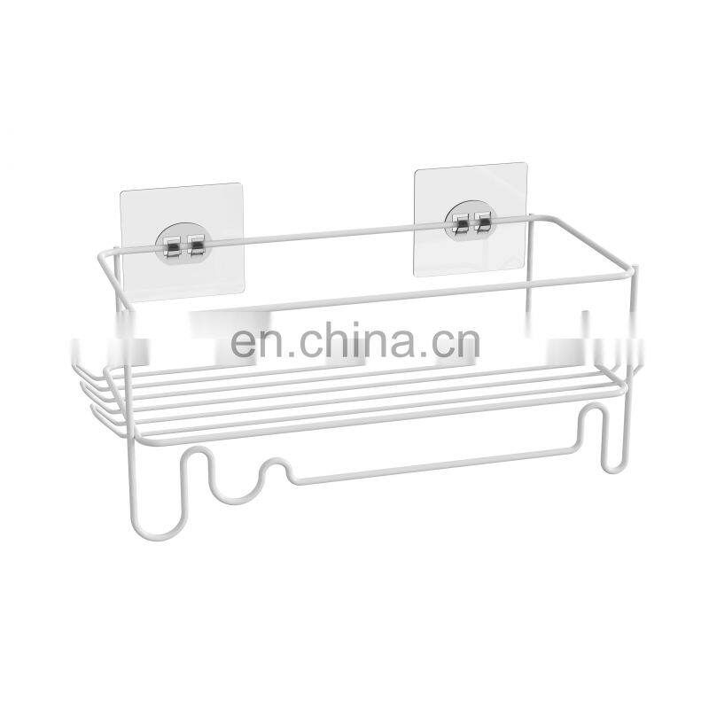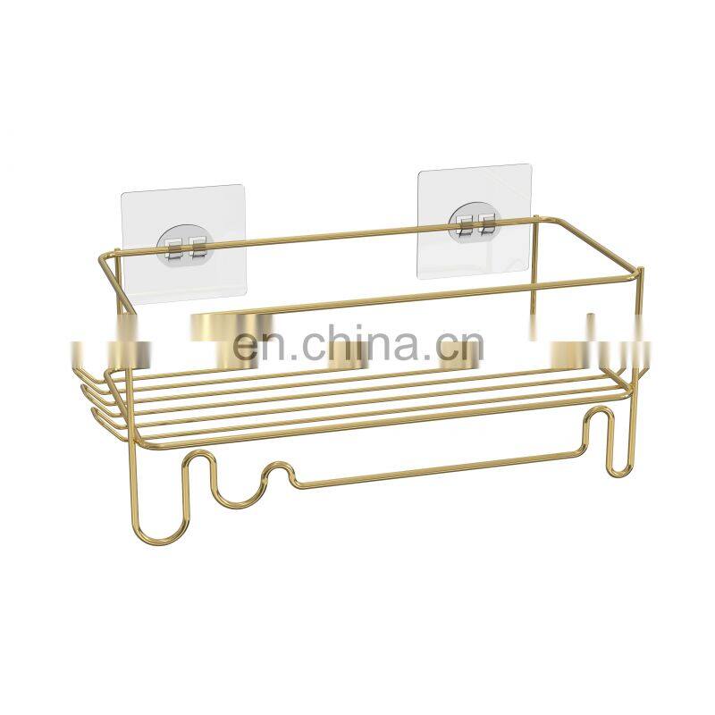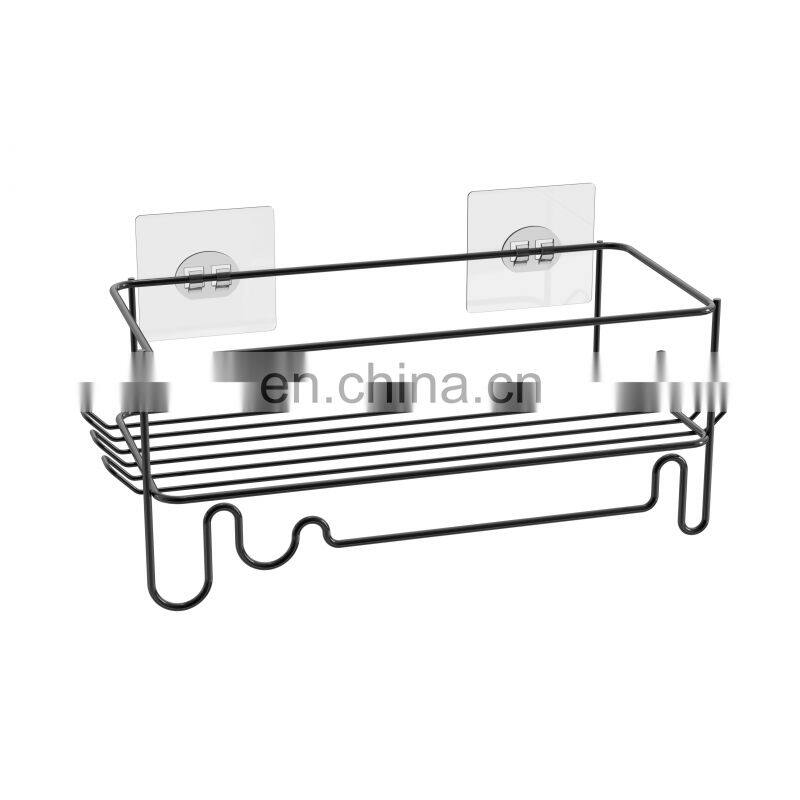 Oem Manufacturer Multifunctional Wall Mounted Metal Shower Towel Storge Shelf Bathroom Rack With Magic Sticker