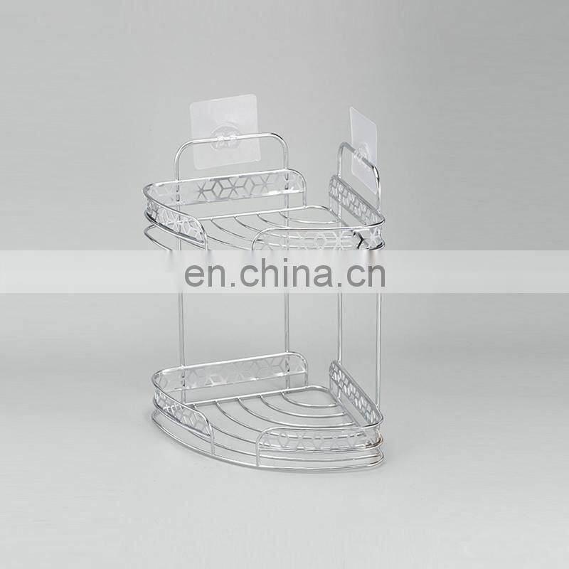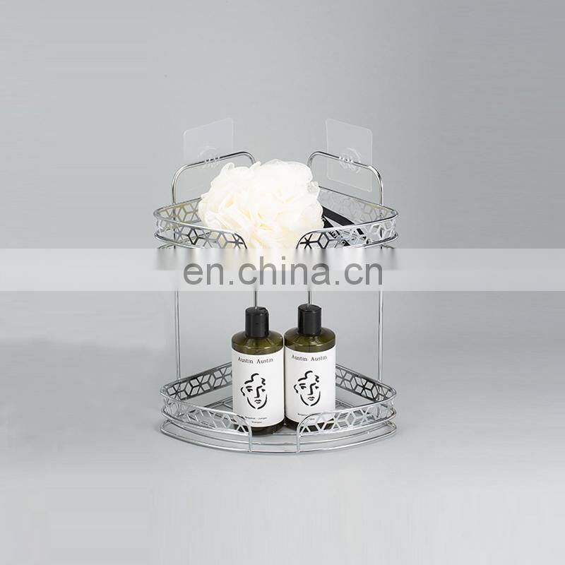- Hot Sales Adhesive Corner Shower Caddy Two Tier Iron Wire Rack Bathroom Corner Shelf