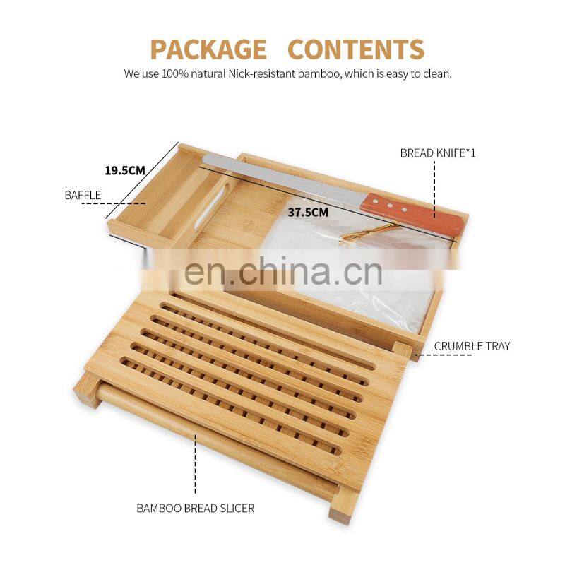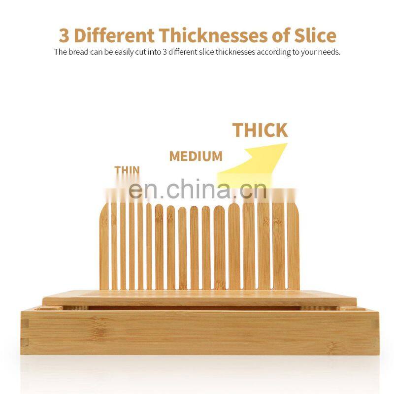 Home > Products > In stock > Bamboo Wood Foldable Bread Slicer Compact Bread Slicing Guide With Crumb Catcher Tray For Homemade Bread Thickness Adjustable