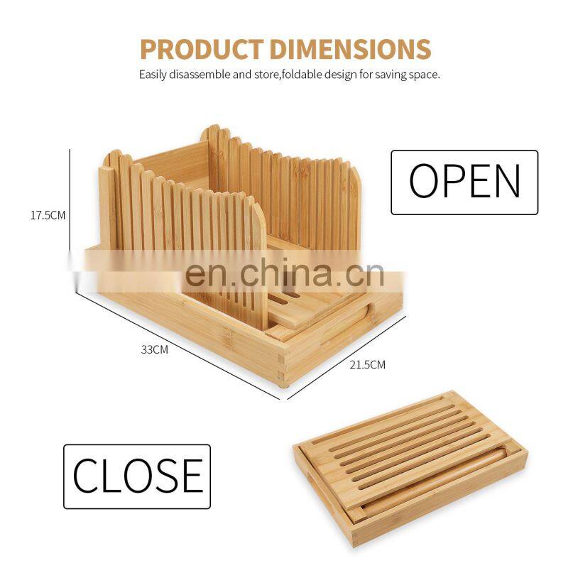 Bamboo Wood Foldable Bread Slicer Compact Bread Slicing Guide With Crumb Catcher Tray For Homemade Bread Thickness Adjustable