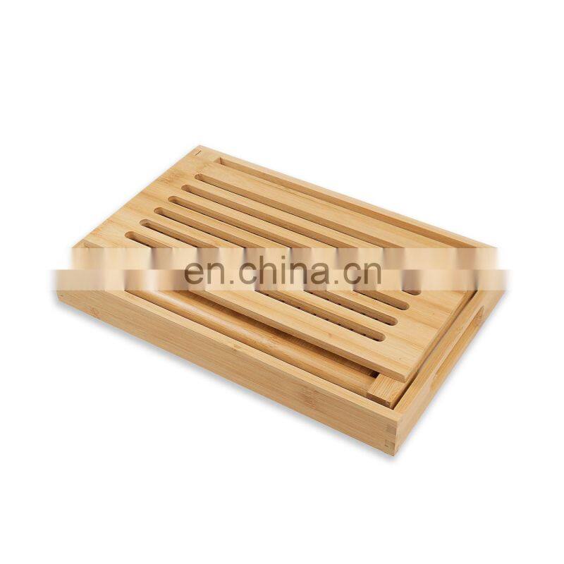 Compact Bamboo Wood Slicing Tray Bread Cutting Board Built-In Handles