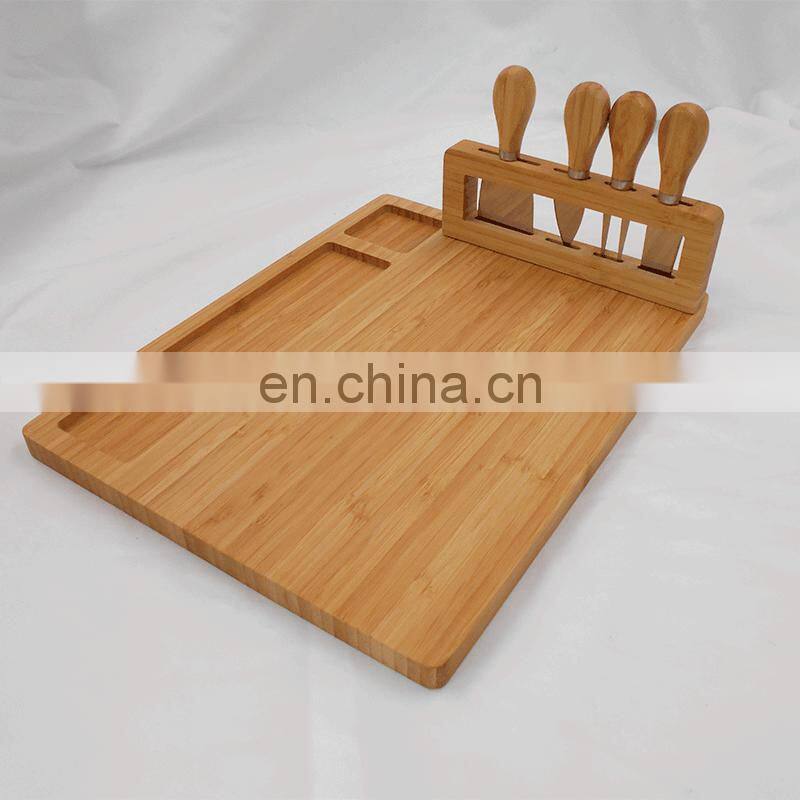 Unique Bamboo Cheese Board Charcuterie Platter Serving Tray With 4 Stainless Steel Knife