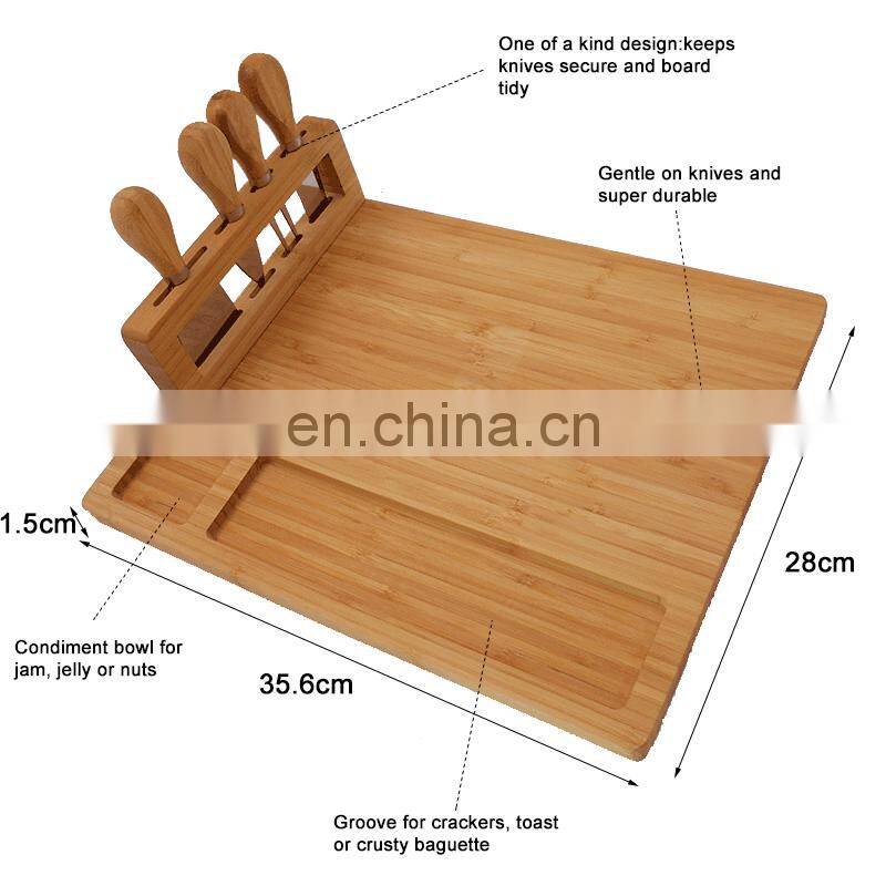 Eco-Friendly Kitchen Bamboo Charcuterie Board Set With 4 Knife Set
