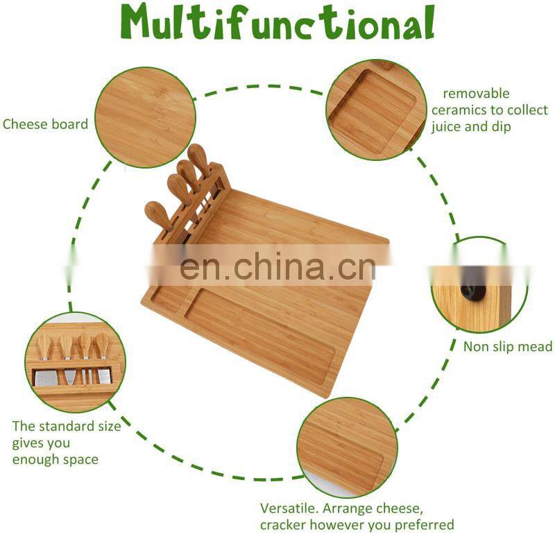 Bamboo Cheese Board 100% Organic Wood Serving Tray Charcuterie Board And Knife Set Ceramic Plates