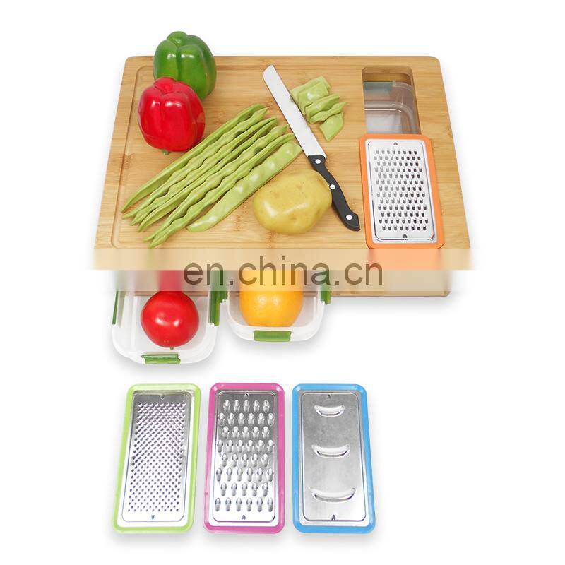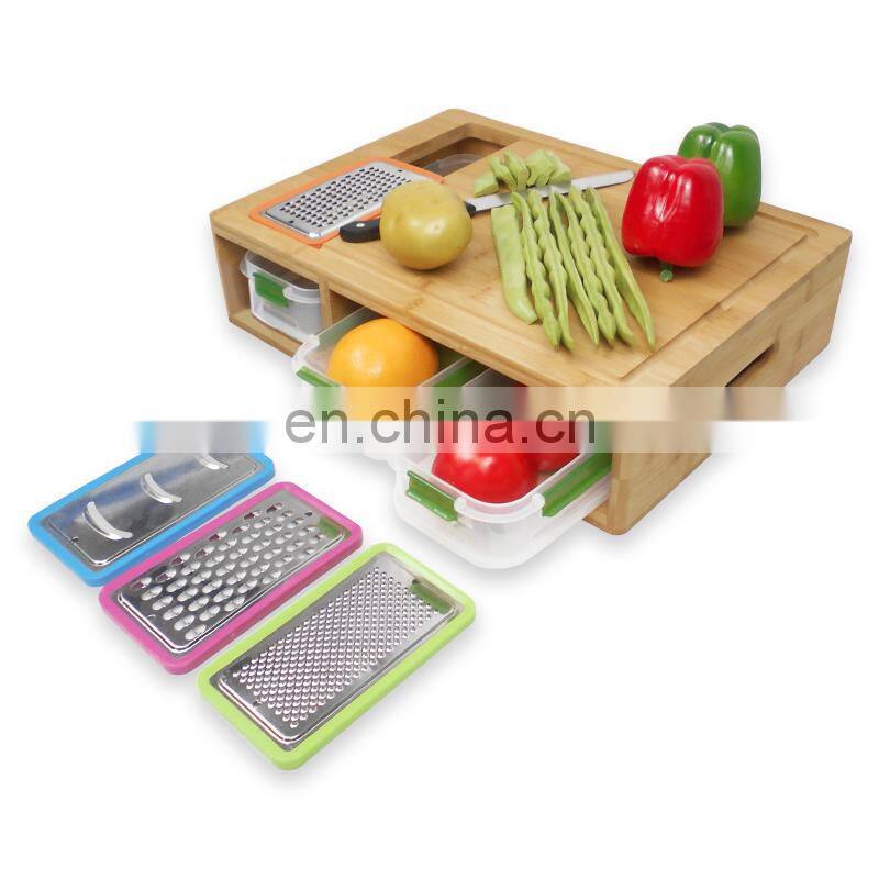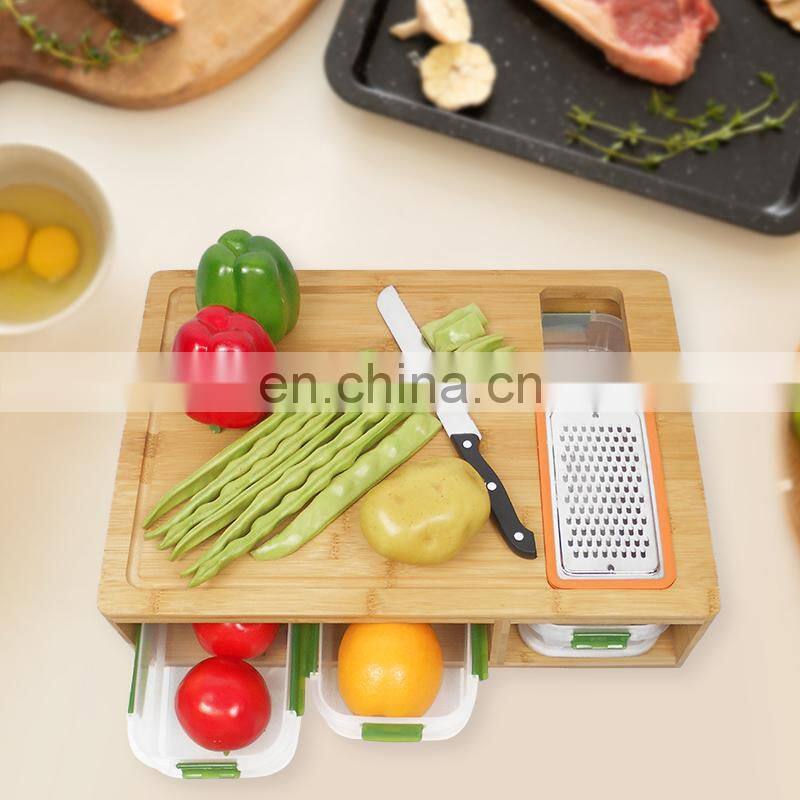 Bamboo Cutting Board 4 Containers Large Chopping Board With Juice Grooves Easy-grip Handle