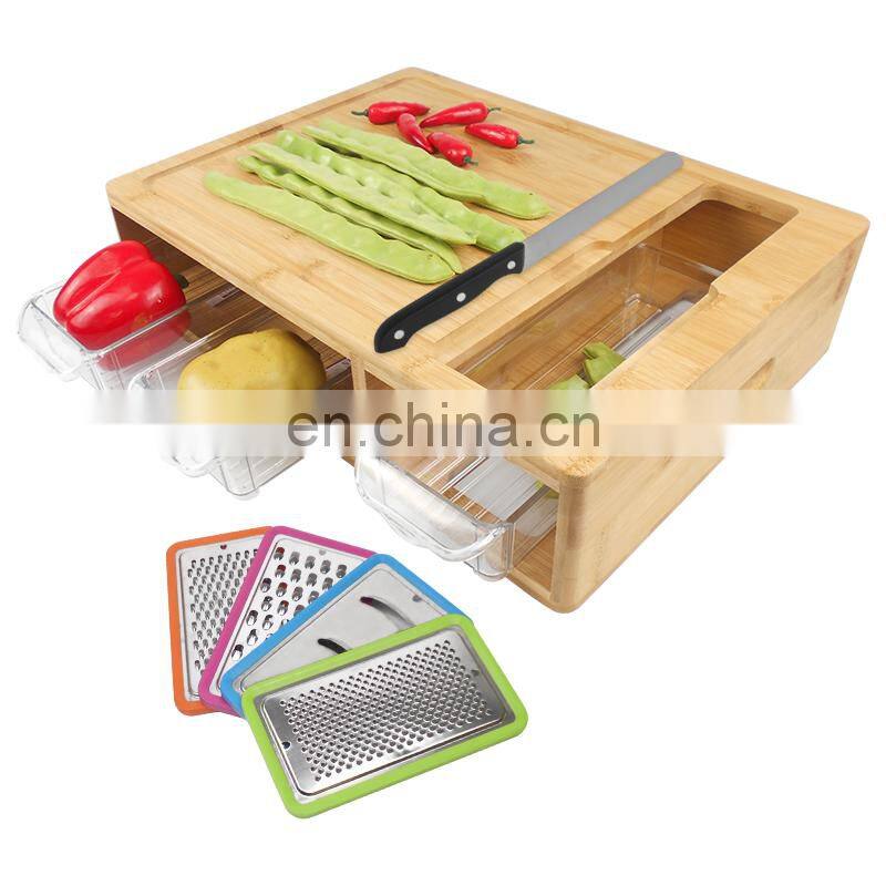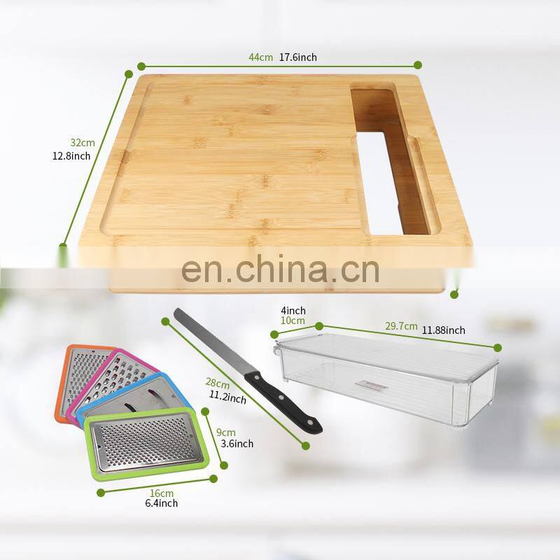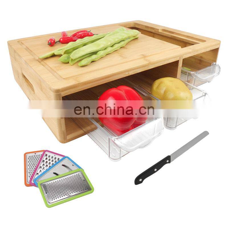 Wholesale Large Custom Multi-Function Food Wooden Bamboo Chopping Cutting Board Set With Stand
