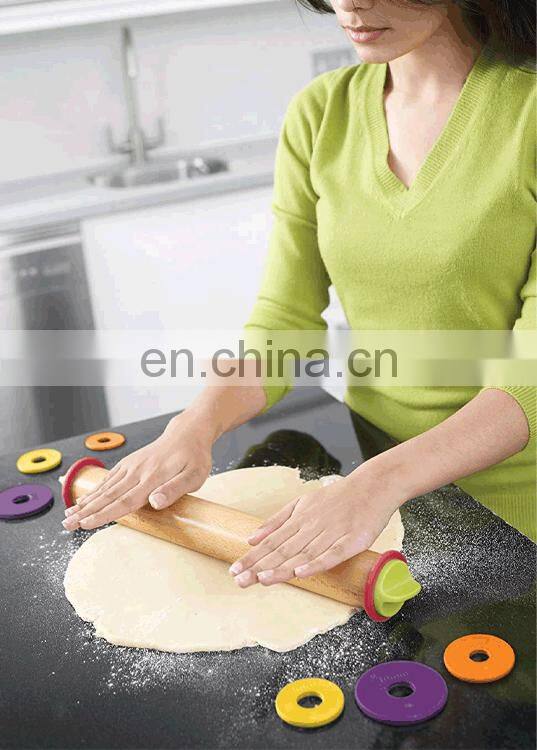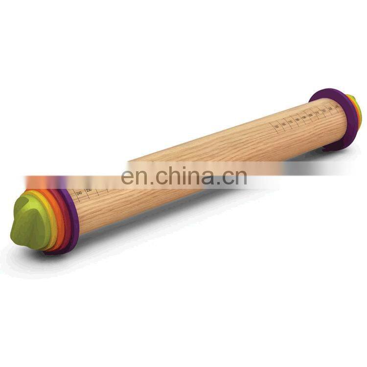 Home > Products > bamboo cutting board > 13.6" Multi-Color Wood Bamboo Adjustable Rolling Pin With Removable Rings