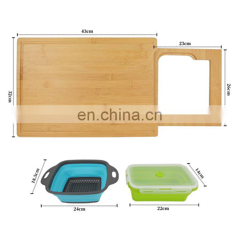 Large Organic Bamboo Chopping Board Cutting Board With Stackable Containers Trays For Kitchen
