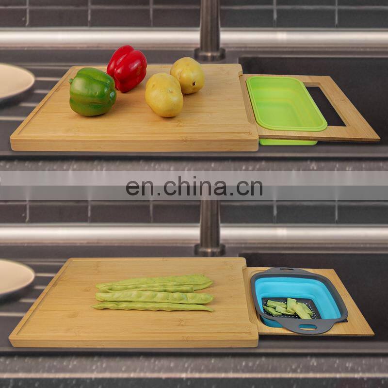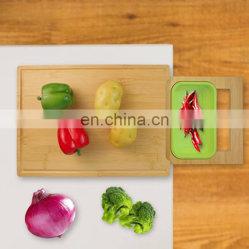 Bamboo Wooden Chopping Board Cutting With Sliding Stainless Steel Tray