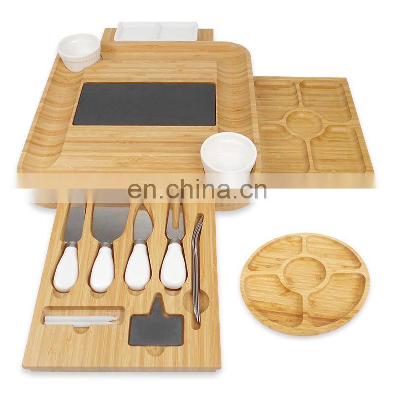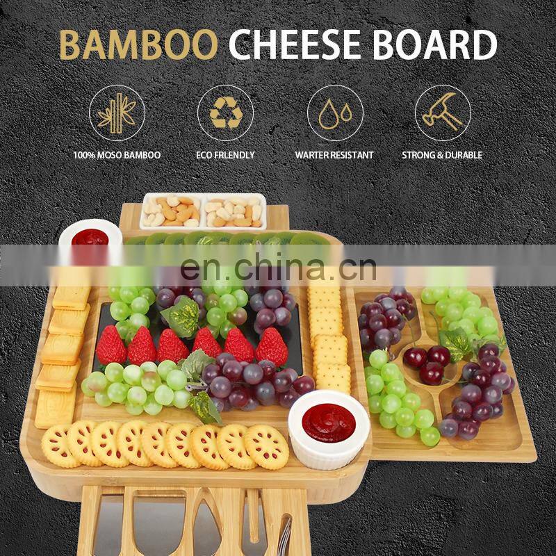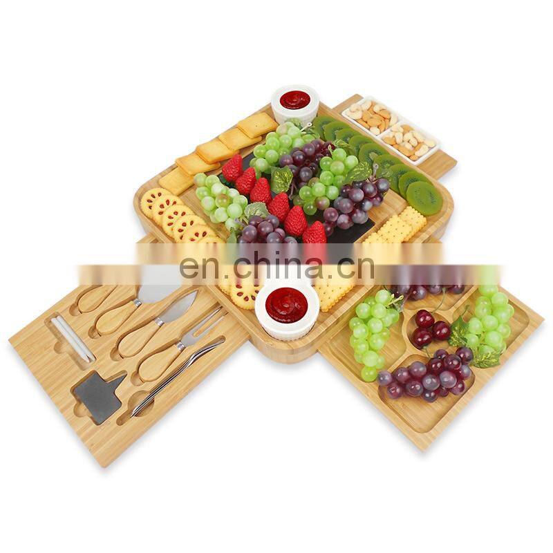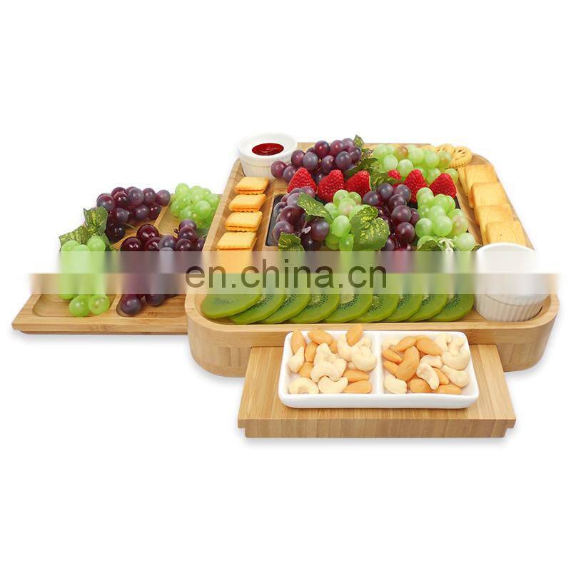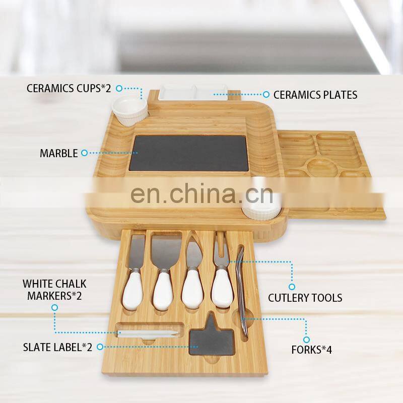 Bamboo Cheese Charcuterie Serving Tray Marble Platters Board With 3 Drawers