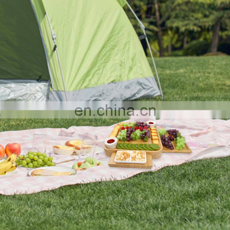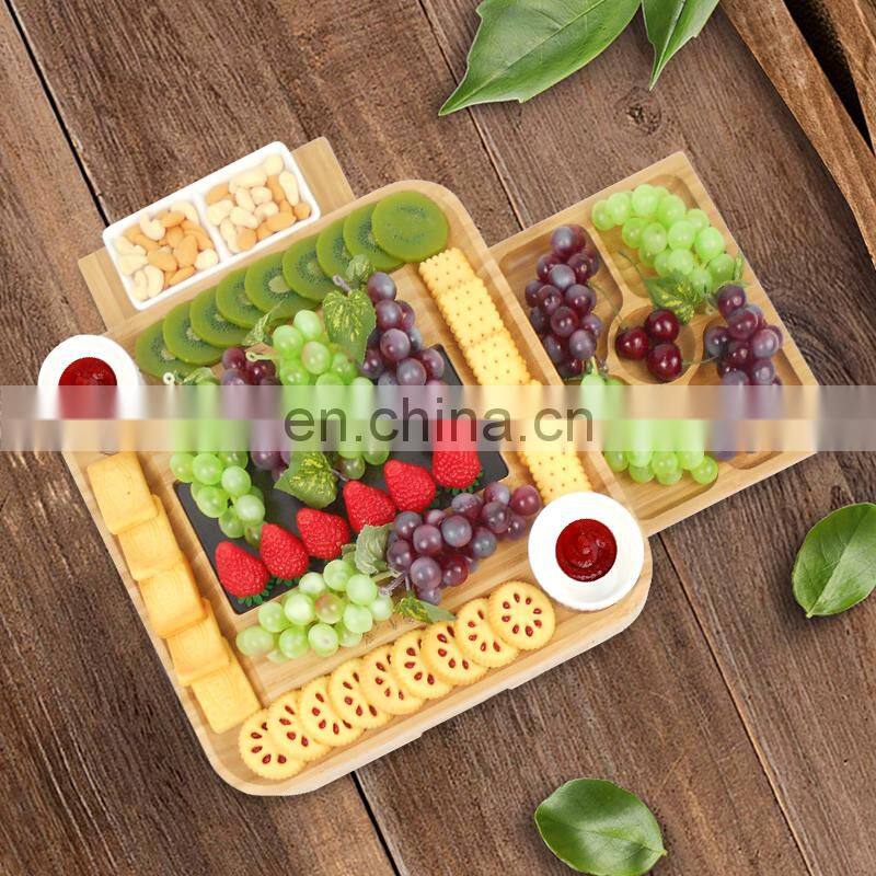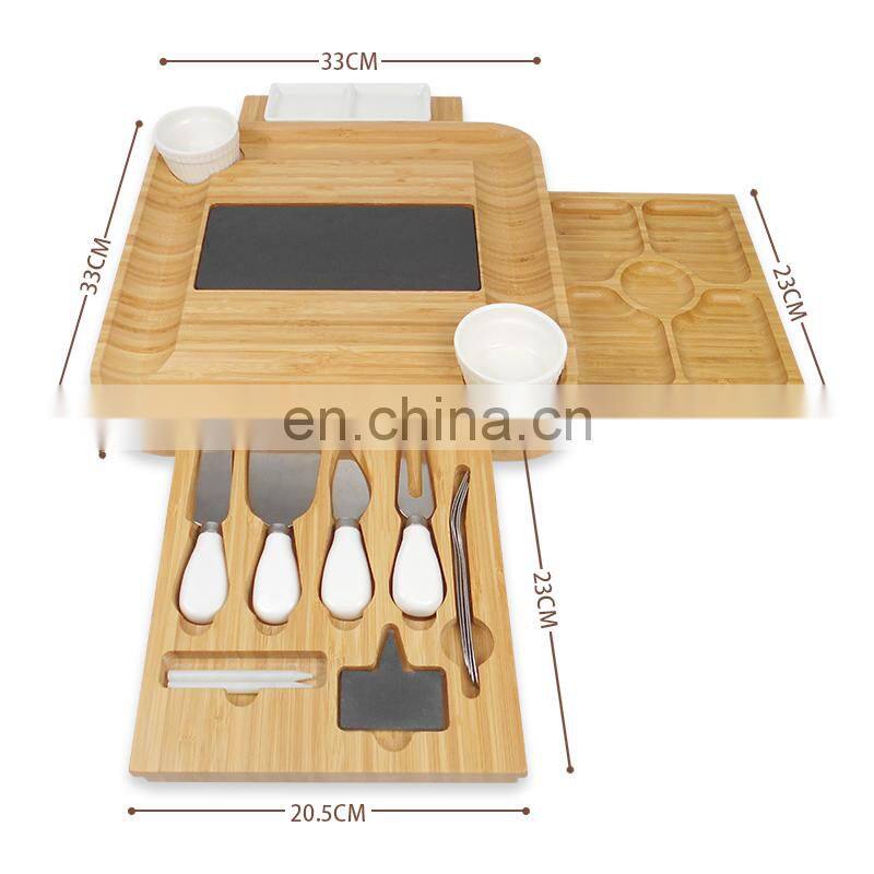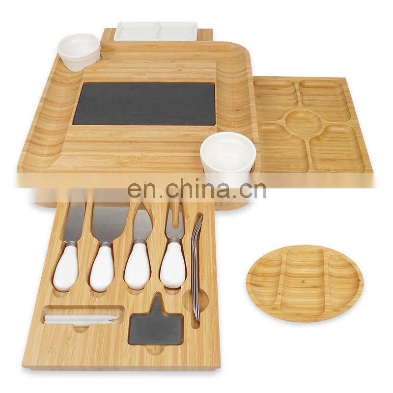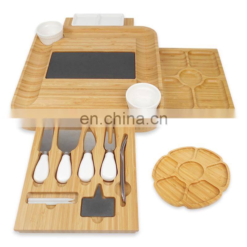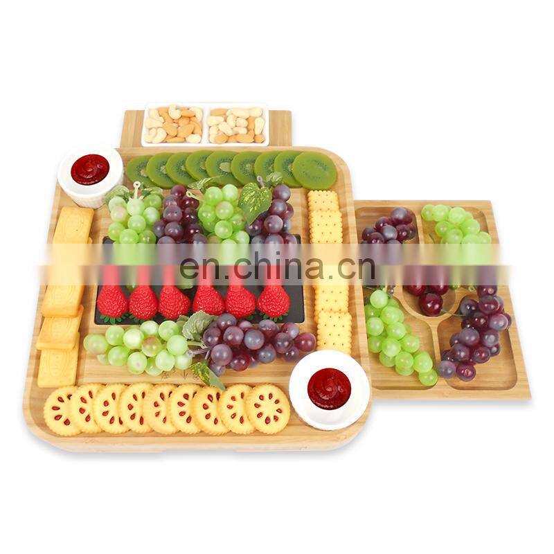 Bamboo Cheese Charcuterie Serving Tray Marble Platters Board With 3 Drawers