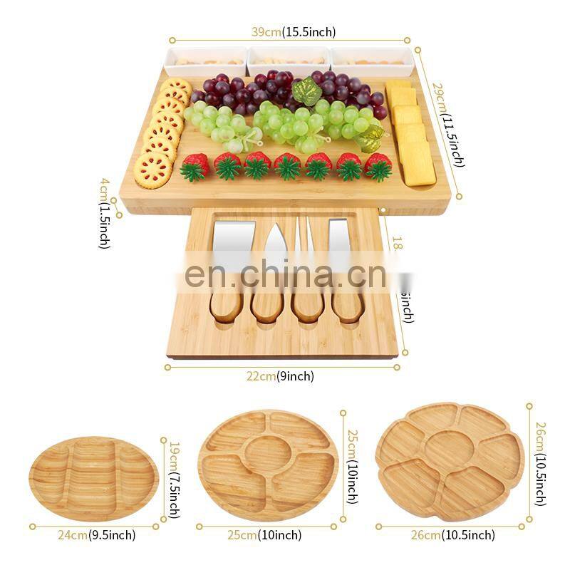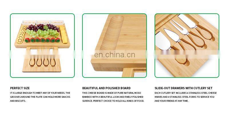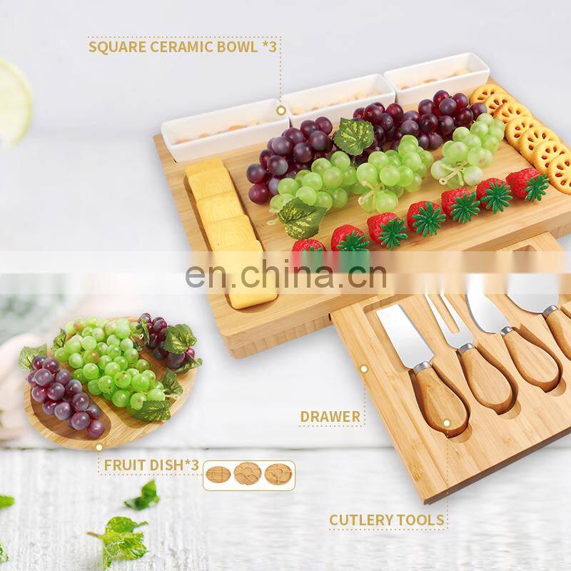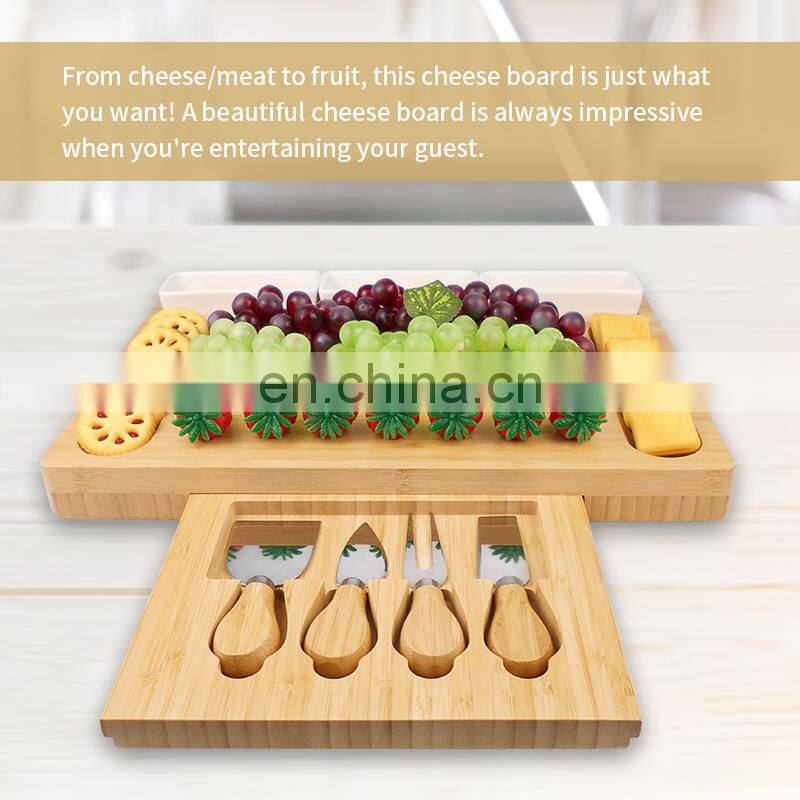Wholesale Premium Bamboo Wood Knife Set Charcuterie Cutlery Slide-out Drawer Cheese Board