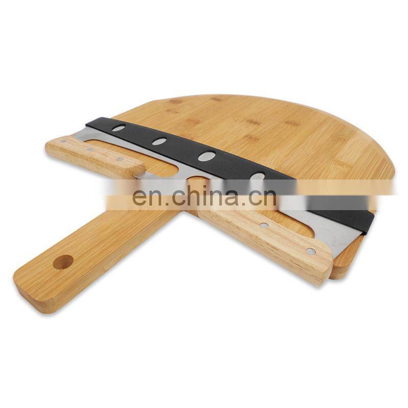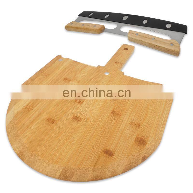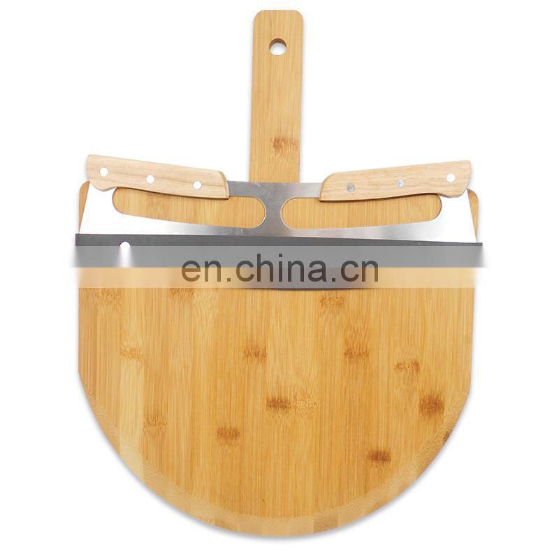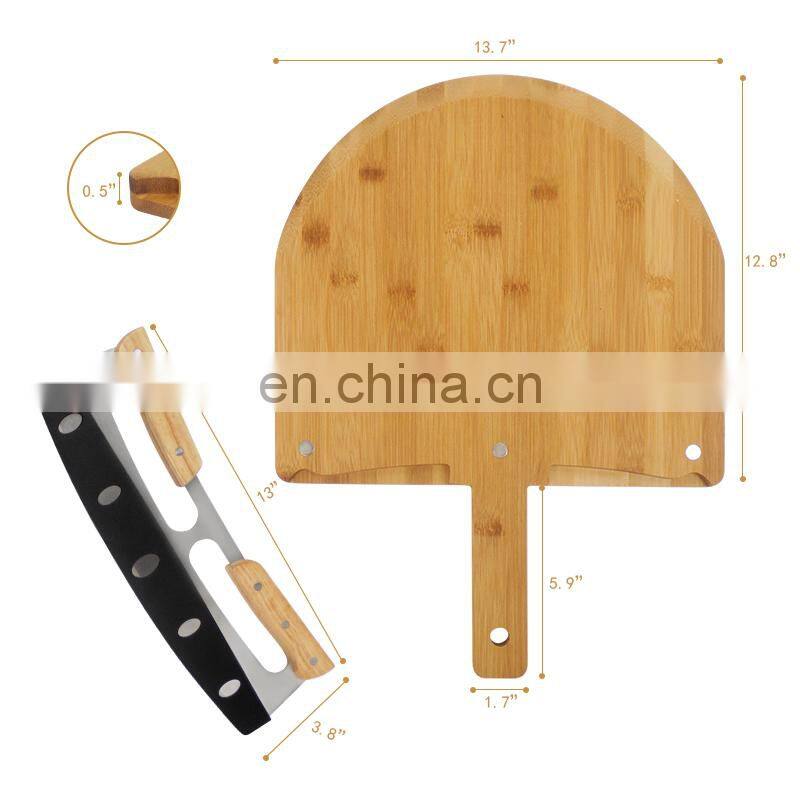 Premium Wood Pizza Peel Bamboo Pizza Serving Board With Pizza Cutter