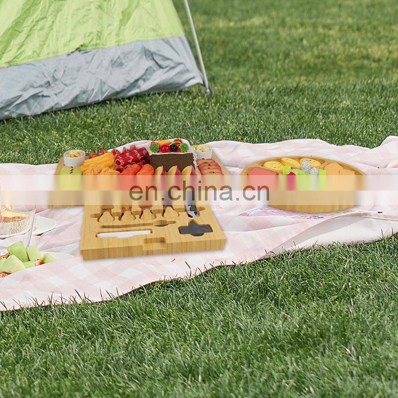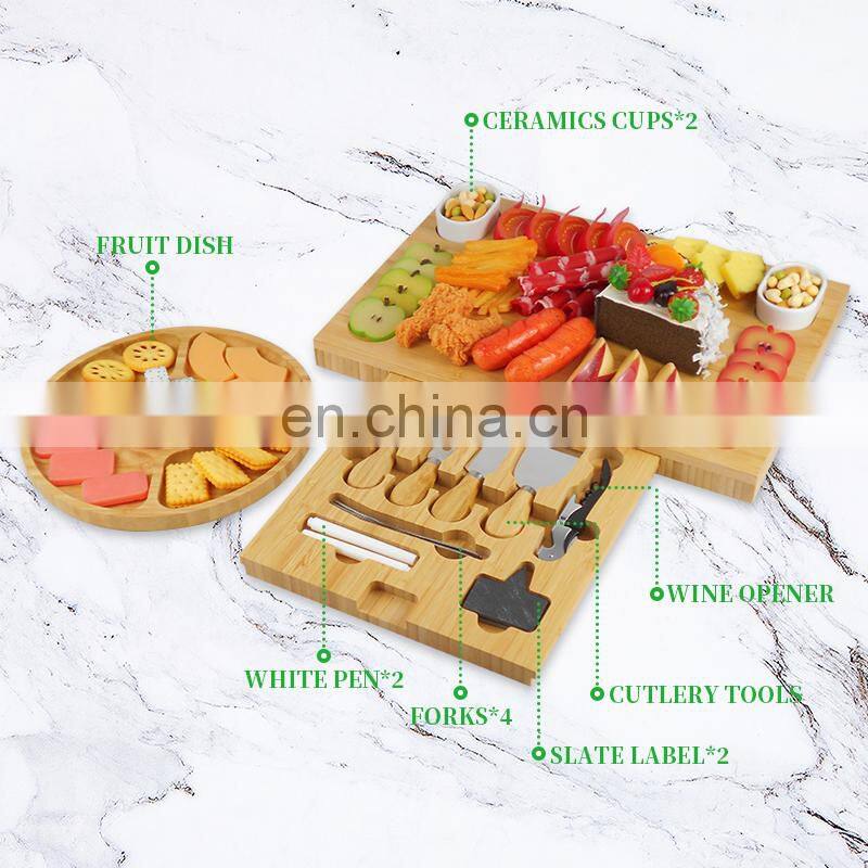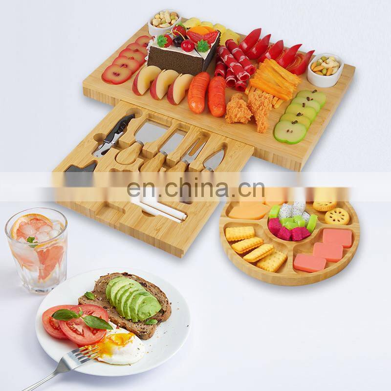 Large High Quality Bamboo Cheese Board Charcuterie Platter Knife Set With Snack Tray