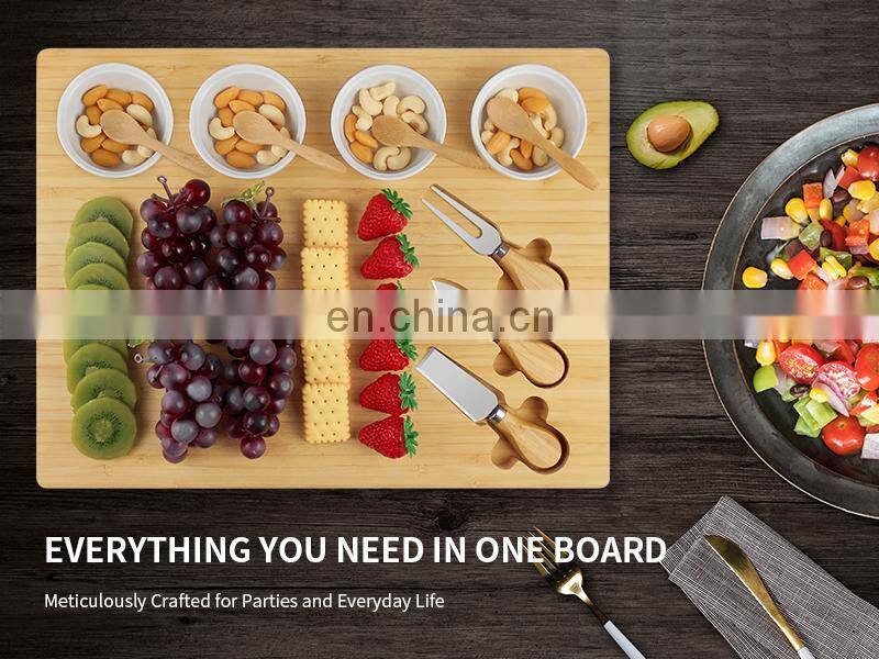 Large Wood Cheese Platter Gift Charcuterie Board Set Unique Bamboo Cheese Board With Cutlery Set and Ceramic Bowls