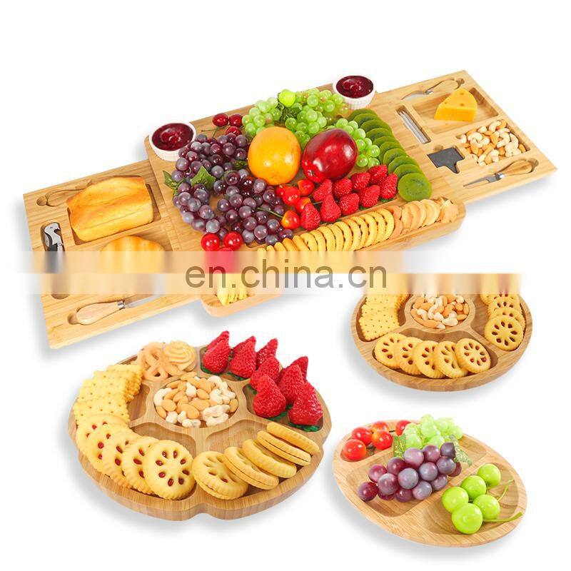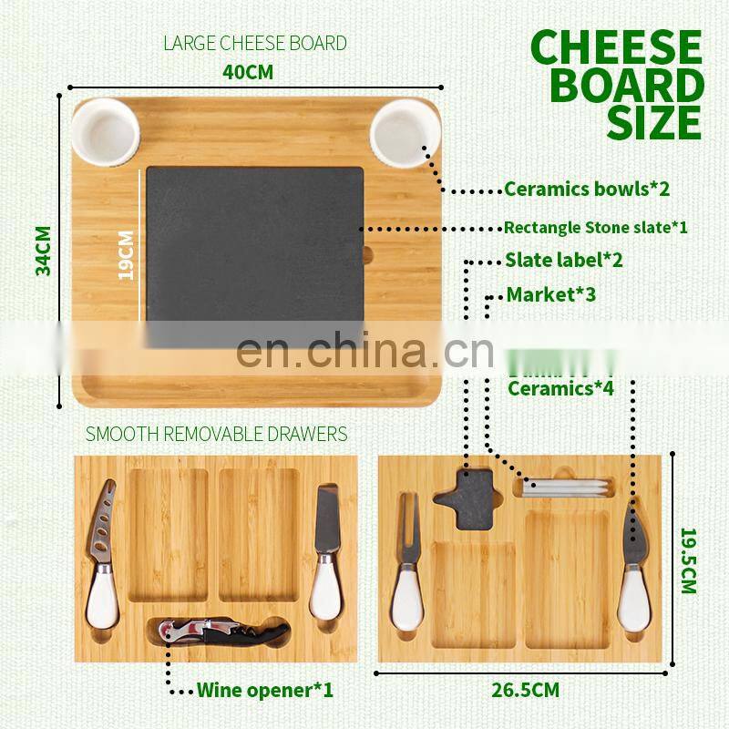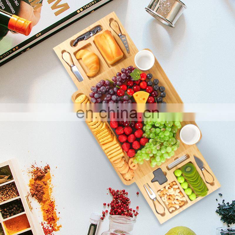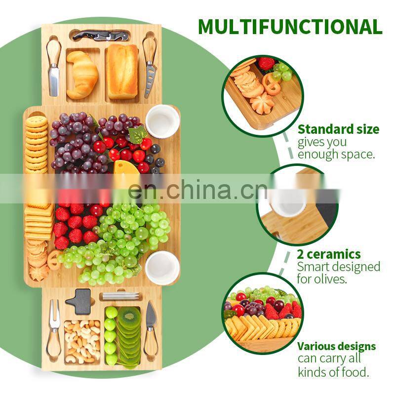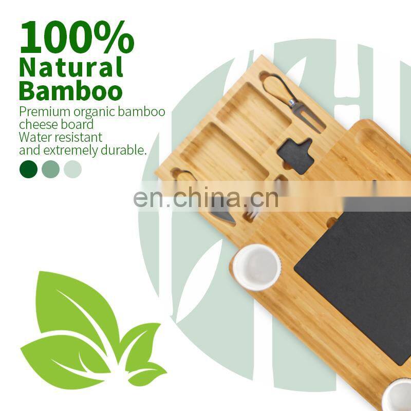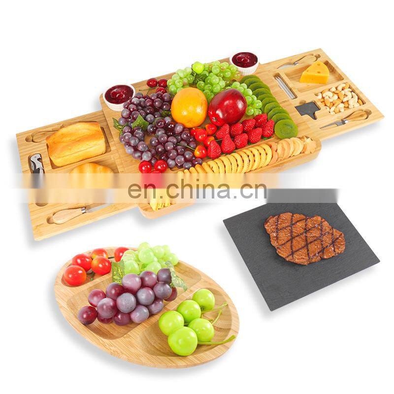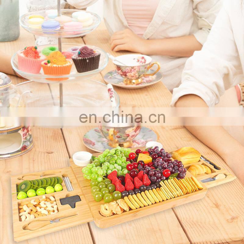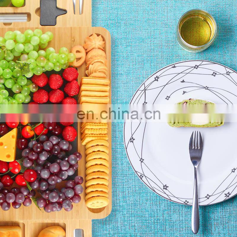 Natural Bamboo Cheese Charcuterie Platter Serving Tray Board Cutlery Set