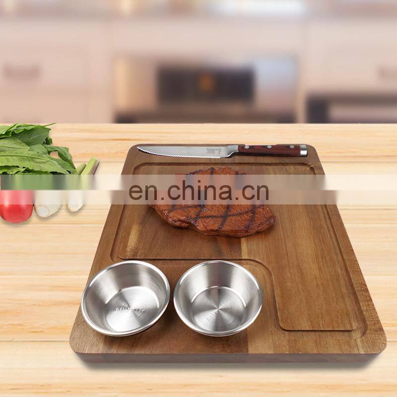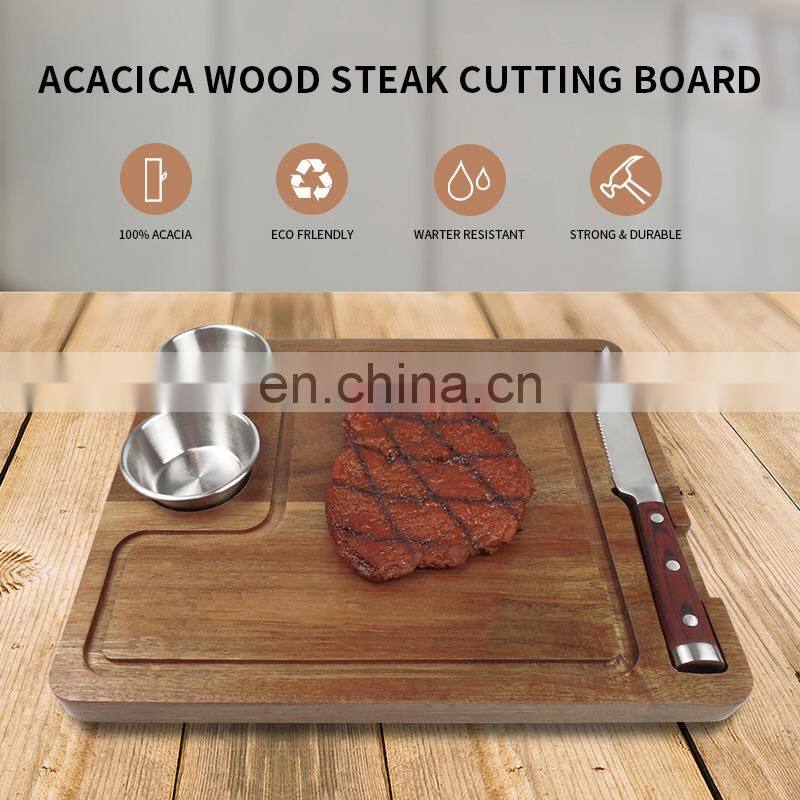 Custom Premium Steak Cutting Board 100% Acacia Wood Steak Knife And Cups