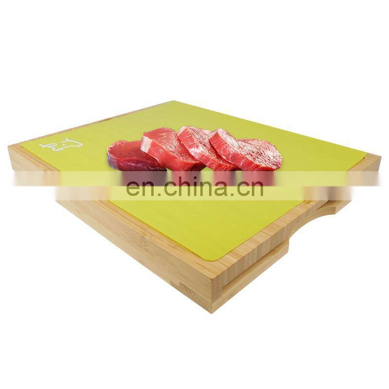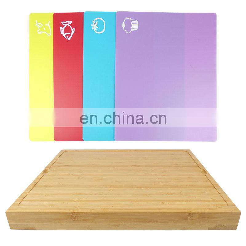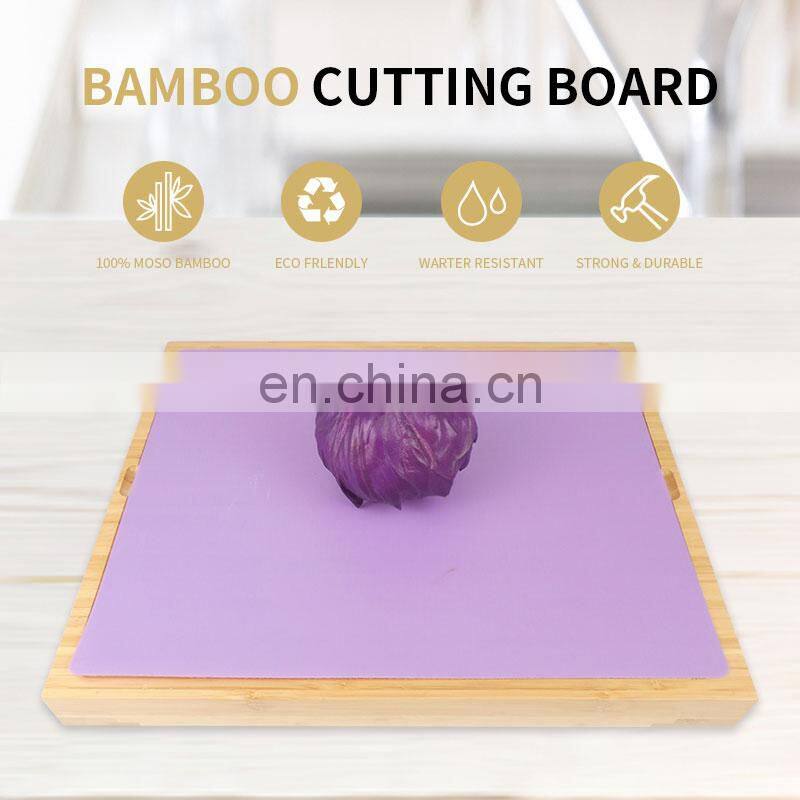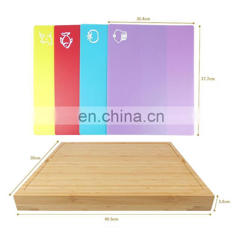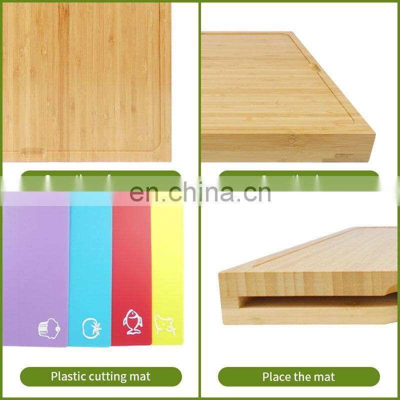 Extra Large Organic Bamboo Cutting Board With 7 Colored Silicone Cutting Mats