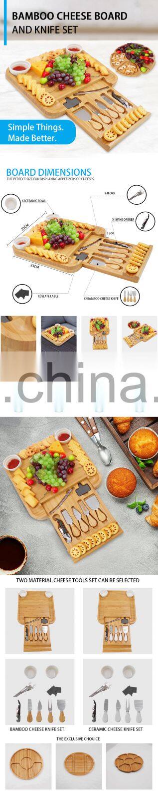 Bamboo Wooden Charcuterie Cheese Board Knife Set Platter With Slide-Out Drawers