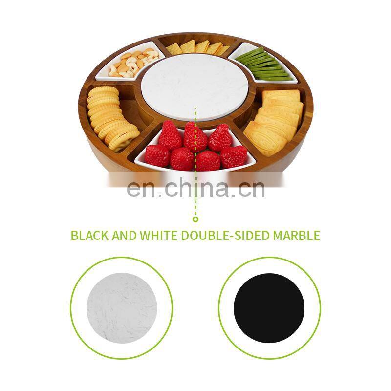 Acacia Wood Cheese Board Knife Set Charcuterie Board With Cutlery In Double Marble 2 Serving Utensils