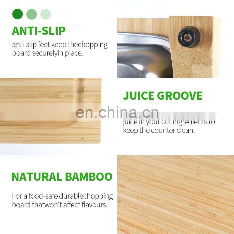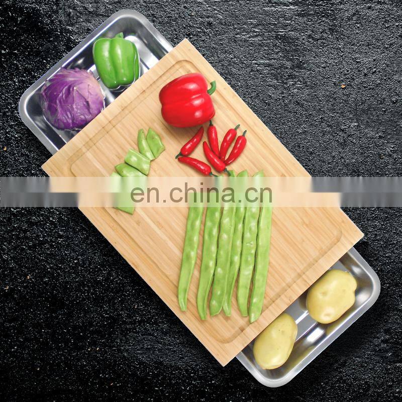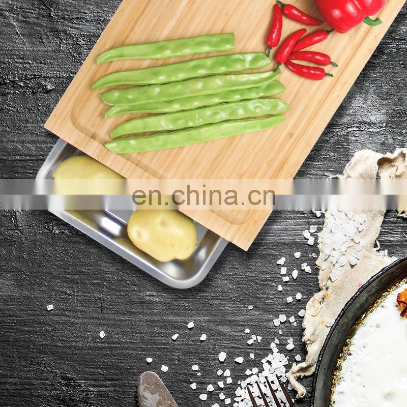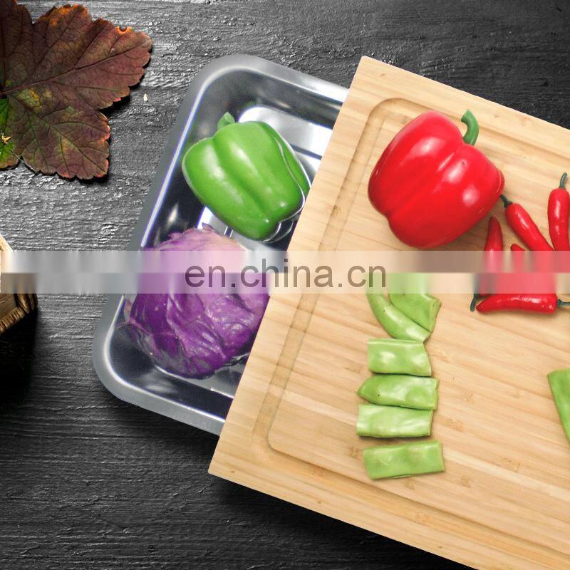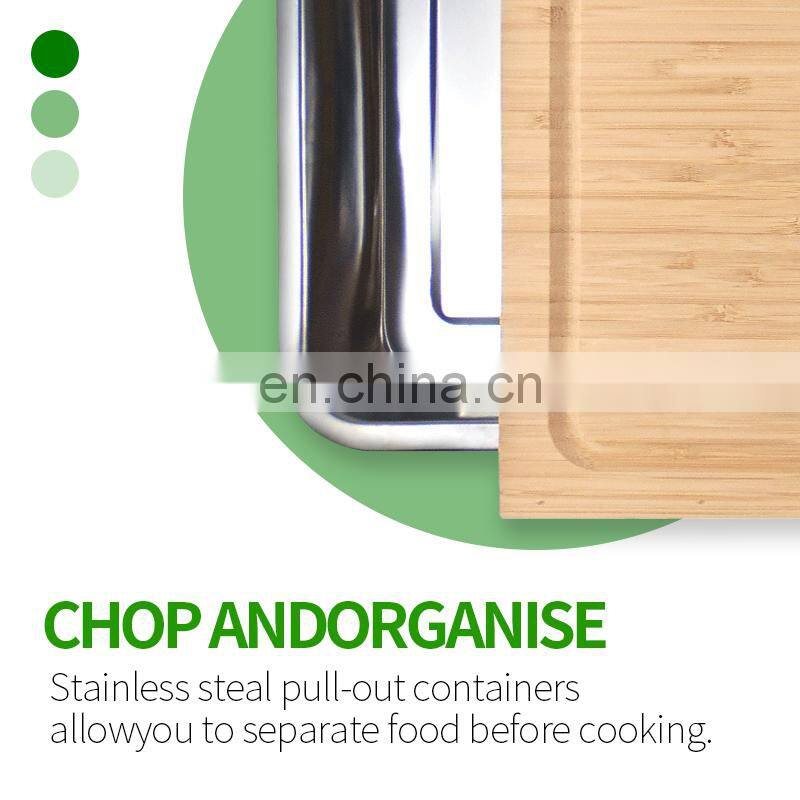 Bamboo Cutting Chopping Block Board With Containers Stainless Steel Tray Drawer for Kitchen Easy Waste Removal & Food Prep