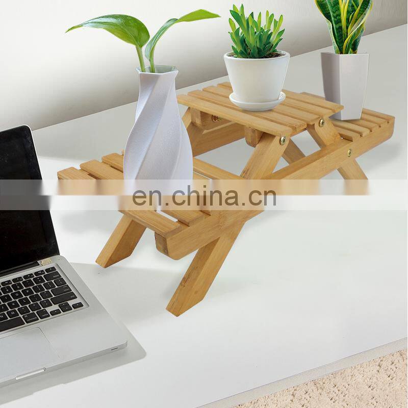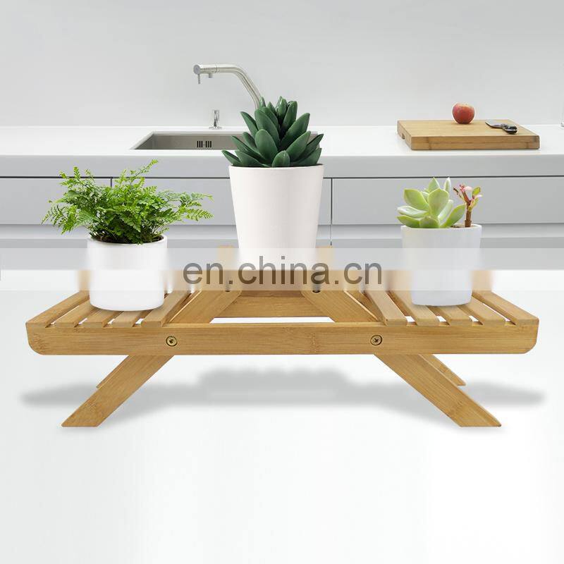 Natual Bamboo Wooden Flower Shelf Rack For Garden
